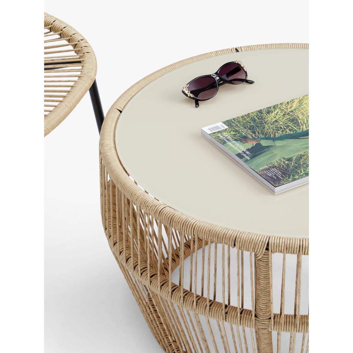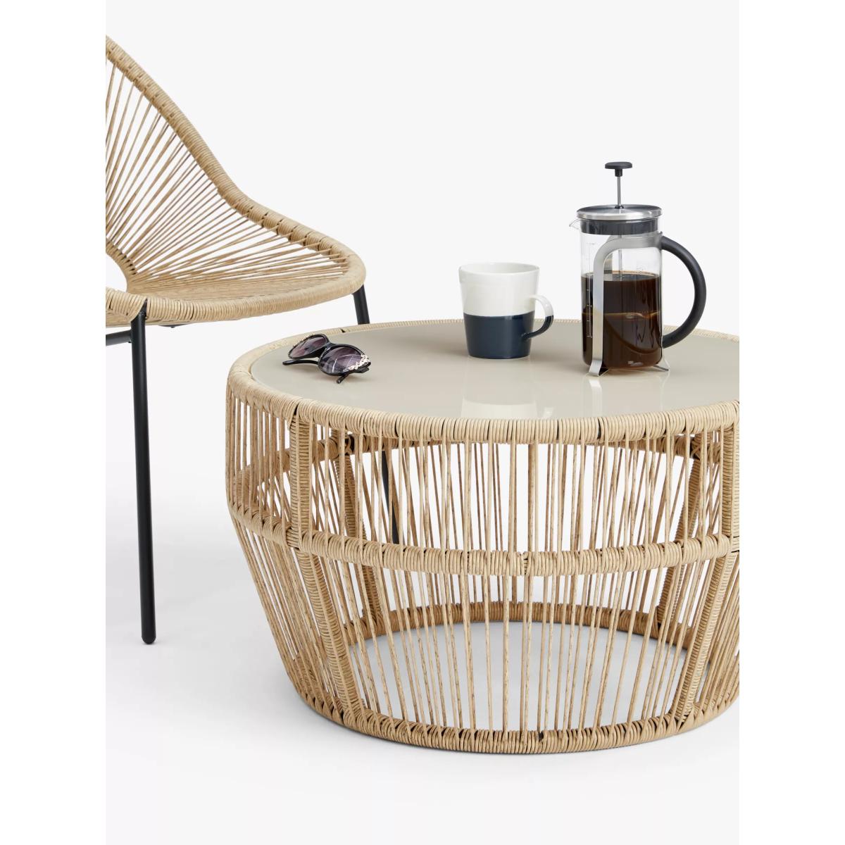 Our Salsa range of garden furniture features an updated rattan design for a garden patio or conservatory refresh. Thanks to its powder-coated steel and polyweave construction, this round Salsa coffee table is both durable and weather-resistant. To extend the product life and appearance, it is recommended to store the furniture in a cool dry, well-ventilated place such as a garage or shed over winter or during periods of unseasonal weather. Ensure that the furniture is clean and completely dry before storing. Pair up with our Salsa chairs or sofa to create the perfect outdoor setting for breakfast, afternoon tea and cocktail o'clock. Key features: Garden coffee table Steel frame and synthetic weave construction Durable and weather-resistant Lightweight Fully assembled Perfect for balconies or smaller spaces Matches furniture in our Salsa range Want to see it first? You may want to see and get a feel for the product in one of our shops before ordering. We'll be able to tell you where the range you'd like to view is on display.
