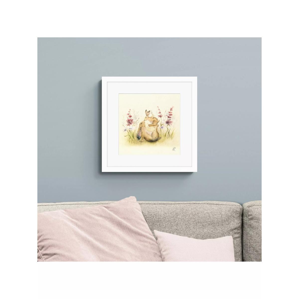 'Precious One' by artist Sarah Reilly. This print is glazed and presented in a window mount and white frame, ready to hang on your wall. Sarah Reilly is an artist and illustrator who moved to the Suffolk Coast to enjoy its glorious countryside. Her favourite time of day is walking the dogs in a peaceful woodland which sparks the imagination and nurtures the soul. Have you thought about wall hooks and fittings?