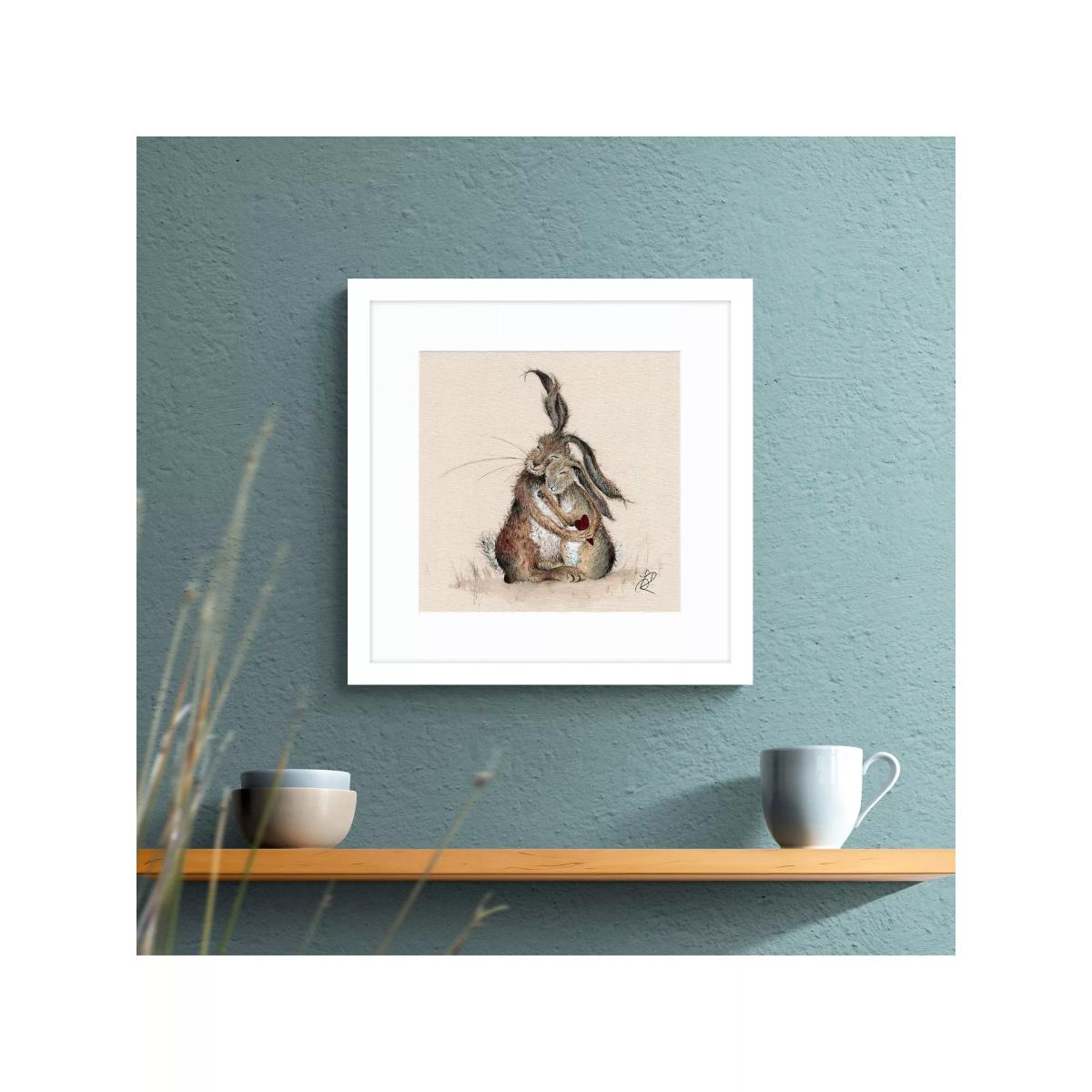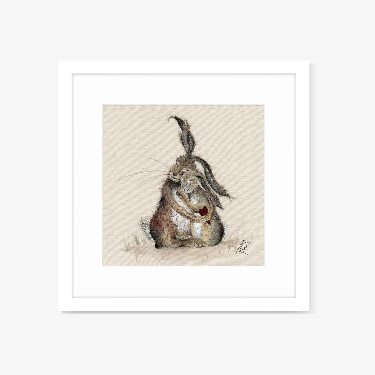 'Hares My Heart' by artist Sarah Reilly. Made in the UK, this print is glazed and presented in a window mount and white frame, ready to hang on your wall. Sarah Reilly is an artist and illustrator who moved to the Suffolk Coast to enjoy its glorious countryside. Her favourite time of day is walking the dogs in a peaceful woodland which sparks the imagination and nurtures the soul. Have you thought about wall hooks and fittings?