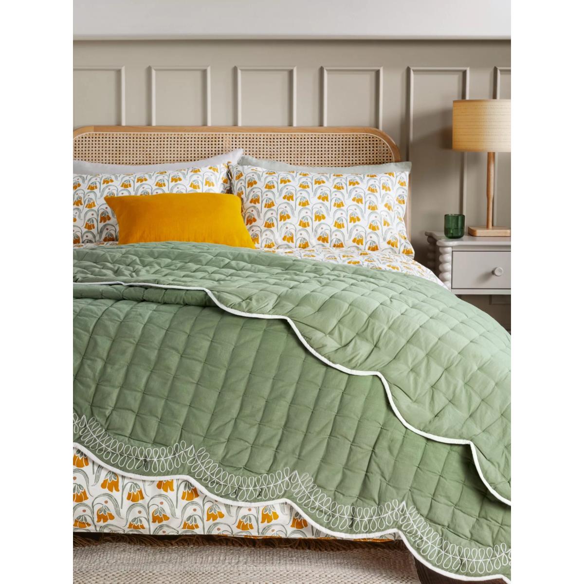 John Lewis Scalloped Edge Bedspread, Myrtle Green