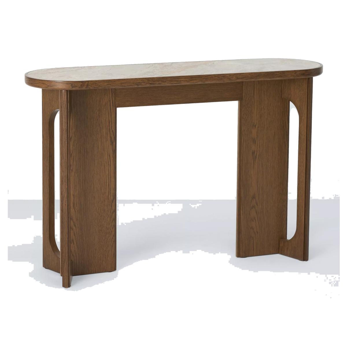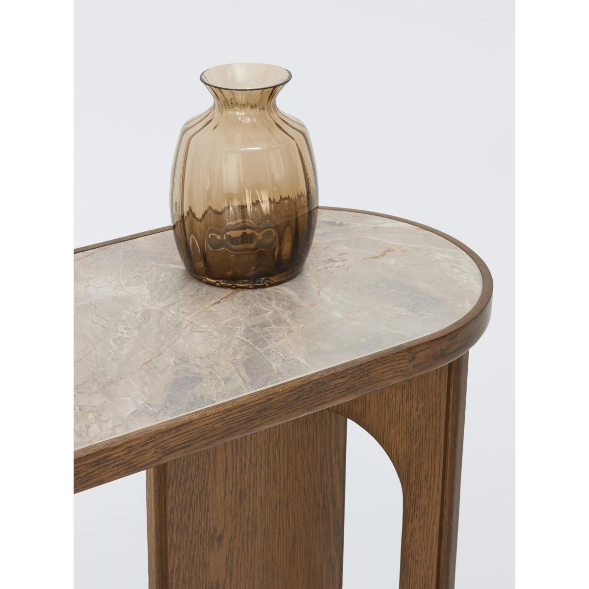 John Lewis Sculpt Ceramic Top Console Table, Dark Stain/Cream