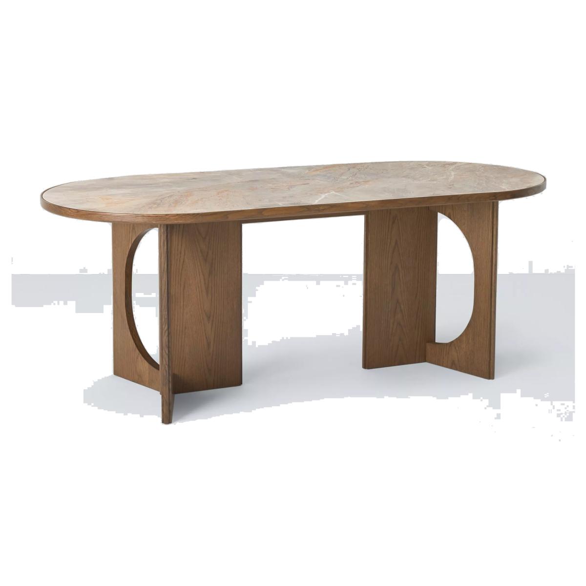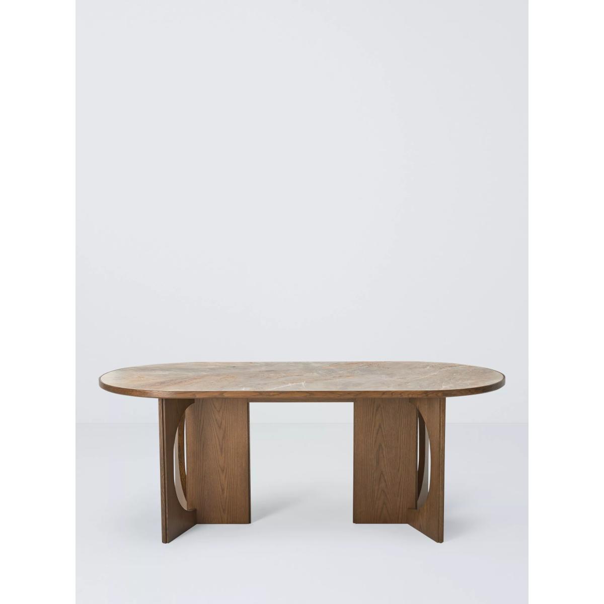 John Lewis Sculpt Ceramic Top Dining Table, Dark Stain/Cream