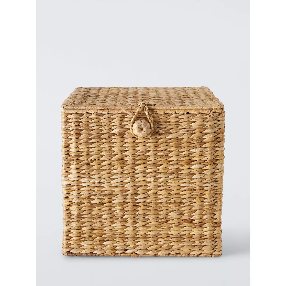 This seagrass storage trunk fastens with a woven loop and button and is perfect for the bedroom, bathroom or utility room. Fast-growing seagrass is hand-woven by highly skilled artisans. Its durability and strength make it ideal for basket-weaving.