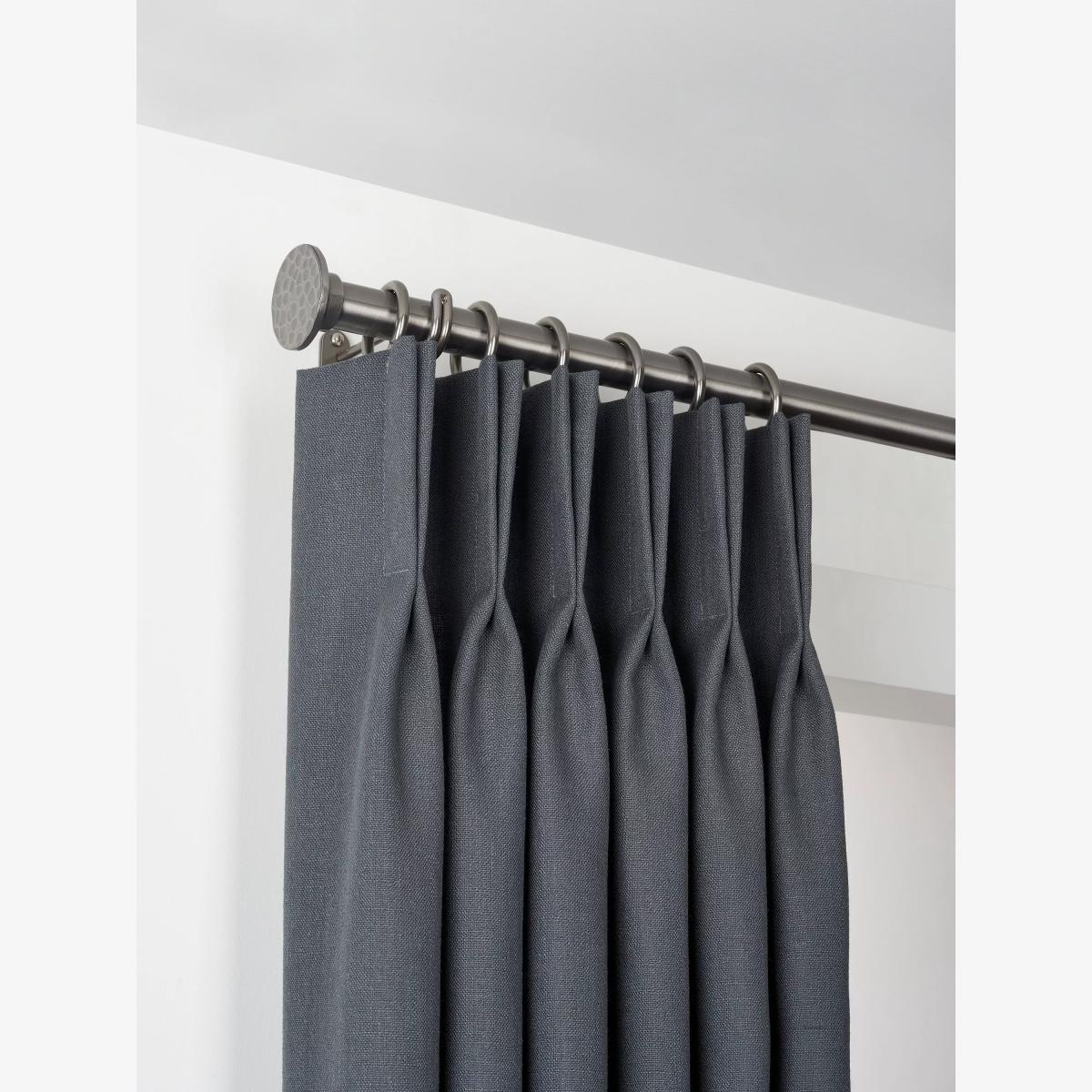 Returns As our usual exchange and refund policy doesn’t apply to products that are made to order or made to measure, our Select Curtain Poles cannot be cancelled, returned or exchanged. This doesn't affect your statutory rights if goods are faulty, or not as described. To see the colour finishes of the poles, a selling partner or home designer, in store, will have a sample ring available with all finishes. Behind every great pair of curtains is an even better curtain pole. It’s important not to neglect this part of your window dressing as, without even realising it, the pole provides support both in the obvious structural sense, but also in terms of complementing your decor. Designed and made here in the UK our premium Select Classic Curtain Poles are a fantastic option. Here’s why: They’re made from high-quality steel that will support all curtain weights, from breezy voile panels to heavy, opulent velvets Depending on the type of pole you choose there are up to four finials and powder-coated finishes available so you can create your perfect configuration Sizes range from 1m to 4m, going up in 10cm increments, so there’s a size to fit every window without having to get the hacksaw out. If the size of the curtain pole selected is 210cm and above, the pole will be delivered in 2 parts. All Select pole sizing excludes finials Even the ‘little bits’ are as robust as possible - the brackets have a vertical back plate that gives maximum support and grub screws secure the pole and finials in place They can be mounted on wood, metal, masonry and plasterboard so you can match the poles throughout your home even if the wall types differ. Just be aware that you may need to purchase specialist fixings Includes: 1 x Curtain pole 2 x Side brackets on all sizes 1 x Centre bracket if over 2m 2 x Finials 1 x Ring per 10cm of pole Fitting instructions Fixings (suitable for some wall types) Fixing guide for advice on specialist fixings required depending on your wall type