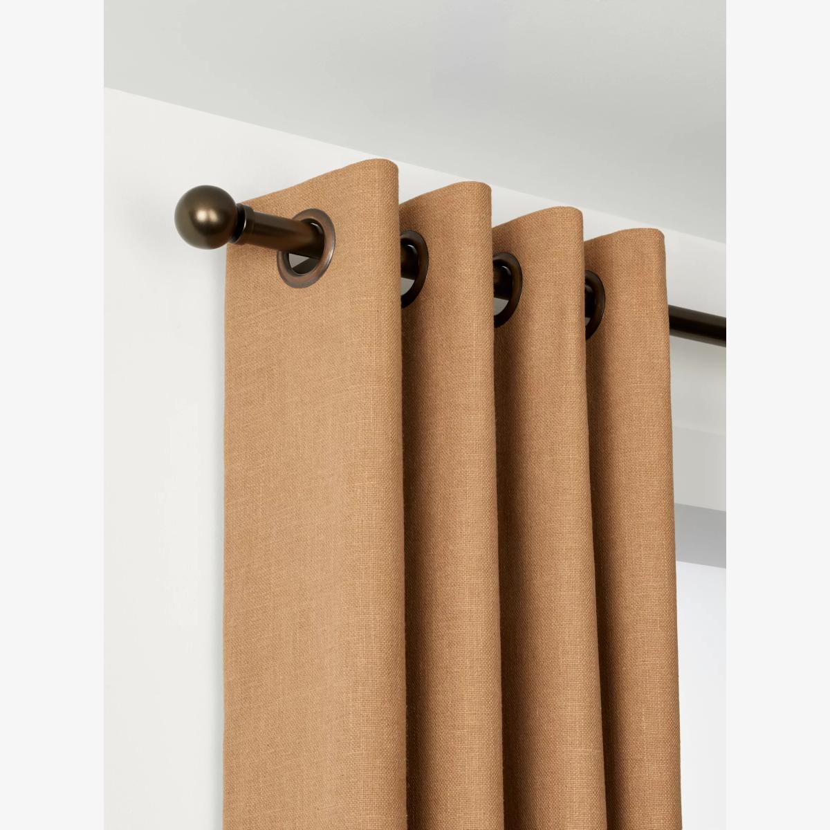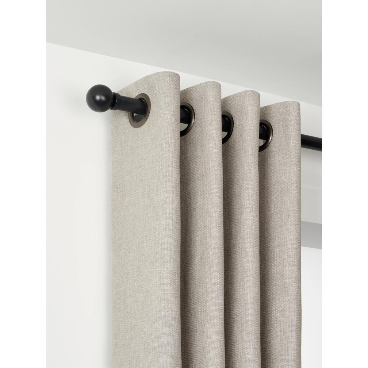 Returns As our usual exchange and refund policy doesn’t apply to products that are made to order or made to measure, our Select Curtain Poles cannot be cancelled, returned or exchanged. This doesn't affect your statutory rights if goods are faulty, or not as described. To see the colour finishes of the poles, a selling partner or home designer, in store, will have a sample ring available with all finishes. Behind every great pair of curtains is an even better curtain pole. It’s important not to neglect this part of your window dressing as, without even realising it, the pole provides support both in the obvious structural sense, but also in terms of complementing your decor. Designed and made here in the UK our premium Select Curtain Poles are a fantastic option. Here’s why: They’re made from high-quality steel and/or aluminium that will support all curtain weights, from breezy voile panels to heavy, opulent velvets Depending on the type of pole you choose there are up to four finials and five powder-coated finishes available so you can create your perfect configuration according to whether you’re going for a modern or more classic look Sizes range from 1m to 4m, going up in 10cm increments, so there’s a size to fit every window without having to get the hacksaw out. If the size of the curtain pole selected is 210cm and above, the pole will be delivered in 2 parts Poles over 2.1m in length will be supplied in two parts Even the ‘little bits’ are as robust as possible - the brackets have a vertical back plate that gives maximum support and grub screws secure the pole and finials in place Magnetic cover plates are included to hide the fixings so there are no unsightly screws left on show They can be mounted on wood, metal, masonry and plasterboard so you can match the poles throughout your home even if the wall types differ. Just be aware that you may need to purchase specialist fixings This particular version is our 25mm, wall-fix eyelet curtain pole with a ball finial. As the name suggests it's suitable for hanging eyelet curtains only. Includes: Curtain pole 1 Brackets 2x side brackets on all sizes 1x centre bracket if over 2m Finials 2 Other Fitting instructions Fixings (suitable for some wall types) Fixing guide for advice on specialist fixings required depending on your wall type Curtain holdbacks are also available as part of our Select range. They come in the same 5 finishes as the pole so you can make sure they match.
