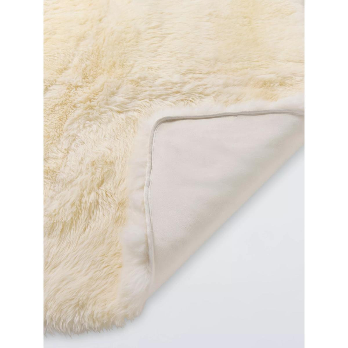 Nothing beats a natural sheepskin rug for that luxuriously soft, warm feel underfoot. Made using New Zealand wool, it's the perfect way to add an instant touch of mid-century style to an uncarpeted room. This is a natural product therefore sight variations in sizing, colour and texture should be expected, making each piece unique. About your new rug We recommend John Lewis & Partners Rug Hold Underlay. It prevents your rug from moving underfoot and protects against colour transfer to the floor Regular light brushing or shaking will assist in keeping the skin's natural characteristics. This product can be machine washed. Pre soak in 40-degree water and wash in a wool cycle. Rinse until water is clear and then spin dry to remove any excess water. Gently comb wool whilst still damp. Slow drying will give best results, line dry away from direct sunlight. Once dry, stretch by hand in all directions. When almost dry stretch by hand in all directions. This product can be professionally dry cleaned. Reshape whilst damp, Flat Dry, Tumble dry at low temperature Owing to the handmade nature of this rug, each piece is unique in size and may differ slightly to the dimensions provided, however this does not impact the design. To avoid colour transfer, we suggest using on floors and hard seating like chairs and benches. Not suitable for use on soft furnishings including leather.