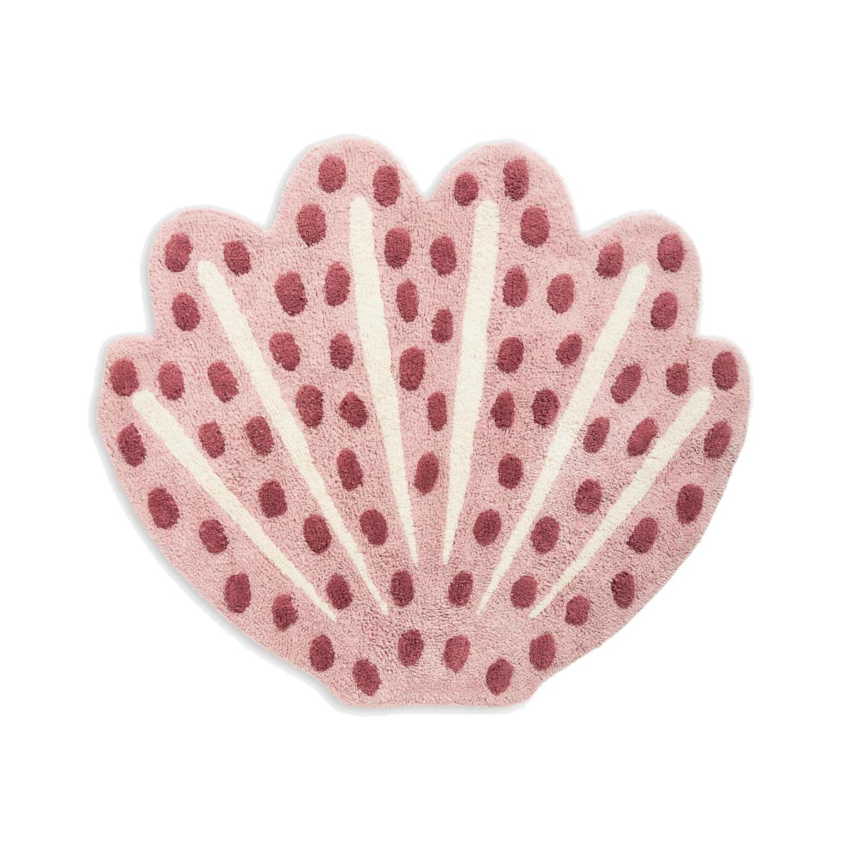 Perfect for seaside-themed rooms, this rug has the shape of a seashell with attractive spotted detail.