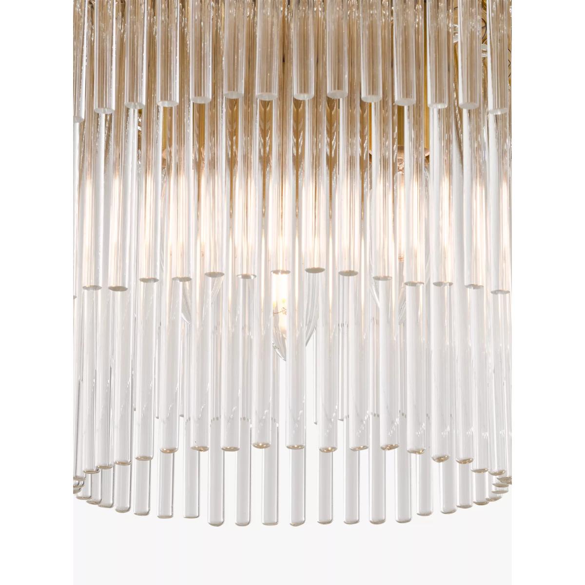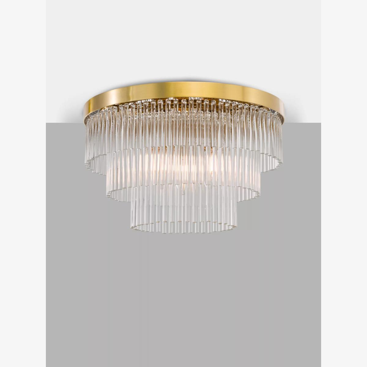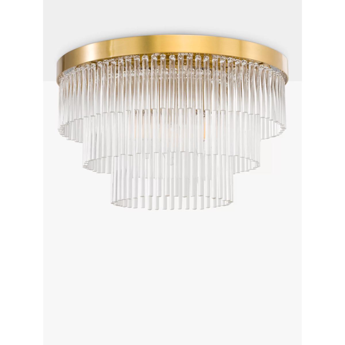 Make a statement with the stunning Shiminista chandelier-style flush ceiling light. Finished in a warm matte brass with layers of clear crystal rods, this ceiling light is a real focal point for a room, bringing sophistication and elegance to your home.