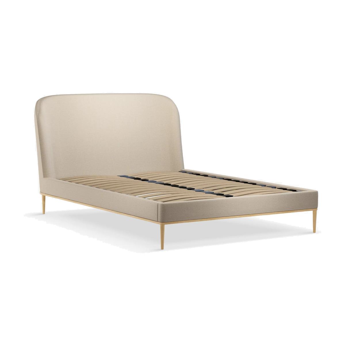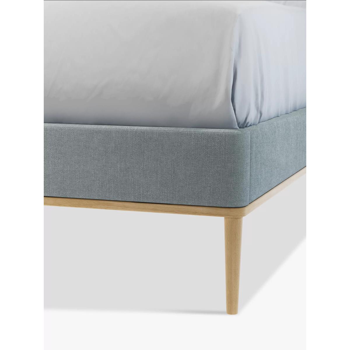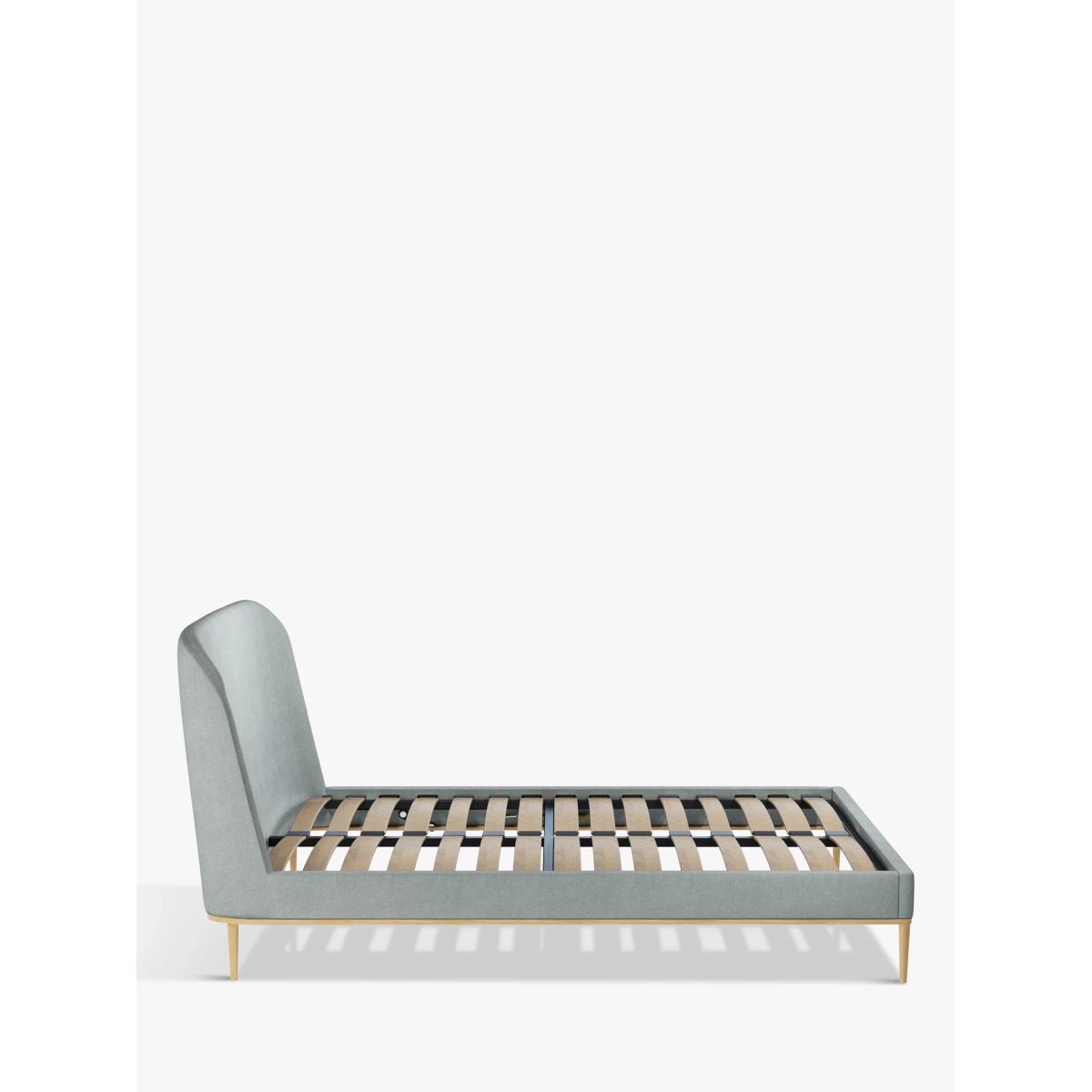 A modern design that incorporates sleek lines and smooth curves, our Show-Wood bed frame will bring a softer style to your bedroom. It's supported by tapered legs and we've added sprung slats to the base for extra support. Available to order in a choice of fabrics. Built with Smart Slats This bed frame is designed with wider slats at the shoulders, lumbar and feet. They provide maximum support for you and your mattress so that you experience perfect spinal alignment while you sleep. The standard slat caps are black so we have added grey slat caps to ensure that you know where to place the wider slats. Choose from one of our fabrics: Our Band A fabric, Cotton Effect has a laid-back and fine-textured look that looks like cotton, but it's made from durable polyester fibres Our Band A fabric, Brushed Tweed is made with a brushed herringbone weave that has a cosy wool look and soft 'peach skin' feel. It's really hard-wearing and a brilliant all-rounder Our Band A fabric, Soft Weave has a casual cotton look with a brushed finish that's soft-to-touch and a suble texture that's created by slight variations in the tones of the woven fibres Our Band B fabric, Deep Velvet will bring warmth and luxury to your bedroom. It's a short pile velvet with a soft, plush feel Our Band B fabric, Soft Touch Chenille is made from a blend of fibres that give it a super-soft feel and added durability Our Band B fabric, Boucle is luxe and oh-so cosy. This plush knitted fabric is super-soft and durable with a thick texture that calls for comfort Our Band B fabric, Deep Velvet will bring warmth and luxury to your bedroom. It's a short pile velvet with a soft, plush feel Our Band B fabric, Mole is a soft and cosy woven wool-blend. Piling and bobbling may occur naturally over time Our Band B fabric, Cord is rich in texture and available in neutral shades that will suit every space. Our Band B fabric, Relaxed Linen gives you the fine texture of cotton, the durability of synthetic fibres and the laid-back look of linen Our Band C fabric, Marylamb is woven from both man-made and natural fibres, creating a tactile and soft-touch feel. Want to see it first? You may want to see and get a feel for the furniture before ordering. Pop into one of our shops to see the full range of colours and fabrics on offer. We'll be able to tell you where the range you'd like to view is on display.