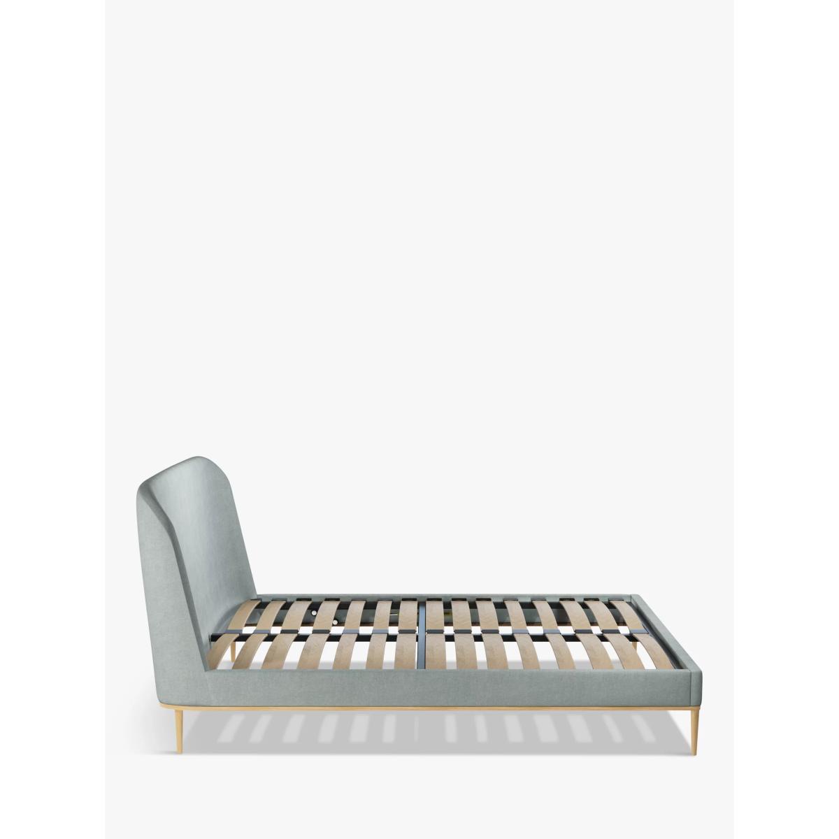 A modern design that incorporates sleek lines and smooth curves, our Show-Wood bed frame will bring a softer style to your bedroom. It's supported by tapered legs and we've added sprung slats to the base for extra support. Available to order in a choice of fabrics. Built with Smart Slats This bed frame is designed with wider slats at the shoulders, lumbar and feet. They provide maximum support for you and your mattress so that you experience perfect spinal alignment while you sleep. The standard slat caps are black so we have added grey slat caps to ensure that you know where to place the wider slats. Choose from one of our fabrics: Our Band A fabric, Cotton Effect has a laid-back and fine-textured look that looks like cotton, but it's made from durable polyester fibres Our Band A fabric, Brushed Tweed is made with a brushed herringbone weave that has a cosy wool look and soft 'peach skin' feel. It's really hard-wearing and a brilliant all-rounder Our Band A fabric, Soft Weave has a casual cotton look with a brushed finish that's soft-to-touch and a suble texture that's created by slight variations in the tones of the woven fibres Our Band B fabric, Deep Velvet will bring warmth and luxury to your bedroom. It's a short pile velvet with a soft, plush feel Our Band B fabric, Soft Touch Chenille is made from a blend of fibres that give it a super-soft feel and added durability Our Band B fabric, Boucle is luxe and oh-so cosy. This plush knitted fabric is super-soft and durable with a thick texture that calls for comfort Our Band B fabric, Deep Velvet will bring warmth and luxury to your bedroom. It's a short pile velvet with a soft, plush feel Our Band B fabric, Mole is a soft and cosy woven wool-blend. Piling and bobbling may occur naturally over time Our Band B fabric, Cord is rich in texture and available in neutral shades that will suit every space. Our Band B fabric, Relaxed Linen gives you the fine texture of cotton, the durability of synthetic fibres and the laid-back look of linen Our Band C fabric, Marylamb is woven from both man-made and natural fibres, creating a tactile and soft-touch feel. Our Band C fabric, Aquaclean Velvet will liven up your bedroom. It's plush, available in a range of bold colours and treated with Aquaclean so that it can be wiped clean with just water. A smart choice for families and those with pets. Want to see it first? You may want to see and get a feel for the furniture before ordering. Pop into one of our shops to see the full range of colours and fabrics on offer. We'll be able to tell you where the range you'd like to view is on display.