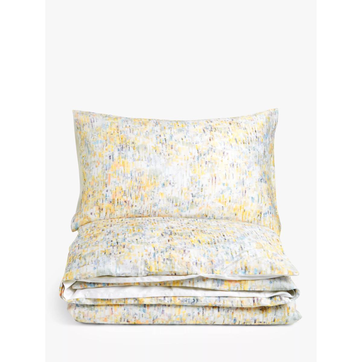 The watercolour effect print of this bedding contrasts beautifully with the plain white reverse. This bedding is made from cotton sateen fabric which is naturally breathable, helping keep you cool and comfortable throughout the night. The single set comes with one standard pillowcase, while the double, king and super king sets come with two standard pillowcases. Bedding sizes To fit duvet/pillow size (cm) Standard pillowcase, L75 x W50cm Single duvet cover, L200 x W135cm Double duvet cover, L200 x W200cm King duvet cover, L220 x W225cm Super king duvet cover, L220 x W260cm