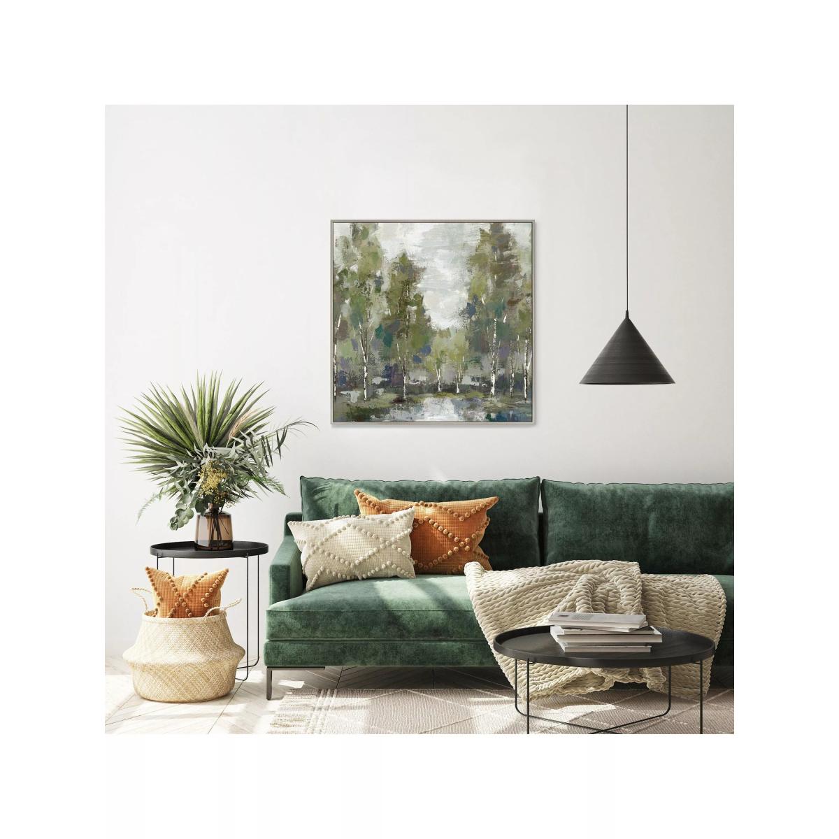 I love this landscape print by Silvia Vassileva for its calming colour palette and serene depiction of nature. It works particularly well in contemporary or minimalist interiors, where its green hues can bring a touch of tranquillity without overpowering the space. Practical styling tips include pairing it with neutral tones for a sophisticated look, or incorporating green accessories like cushions or vases to create a cohesive feel. Its 80 x 80cm size makes it an eye-catching piece that can fit well above a sofa or sideboard, providing a visual anchor in your living room or bedroom. Keep framing simple-this piece benefits from a clean, understated frame to let the artwork truly speak for itself.