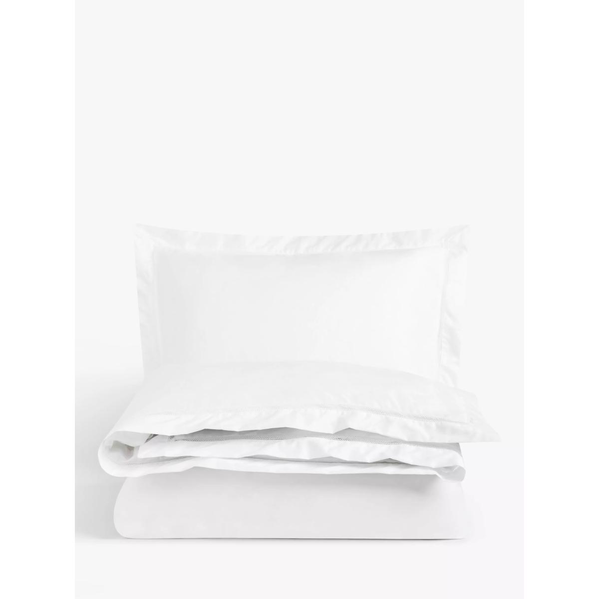 Soft and luxurious, this sateen bedding is crafted from high quality 400 thread count Egyptian-grown cotton, famed for its high quality. The satin weave gives a subtle sheen and smooth, silky feel. It affords a lustrous, opulent feel and promises an exquisite handle and sensational finish Egyptian Cotton The long, fine fibres grown exclusively in the Nile Delta make Egyptian cotton one of the world’s finest, giving this bed linen both its durability and beautiful softness. Egyptian cotton is celebrated for its superior strength, durability and exquisite comfort, and we’ve worked hard to source the very best for this range. Thread count This number refers to the number of threads per square inch. Typically, the higher the thread count, the softer and smoother the feel. Please note that duvet covers and pillowcases are available to buy separately and not in sets. Bedding sizes To fit duvet/pillow size (cm) Standard pillowcase, L75 x W50cm Oxford pillowcase, L75 x W50cm (excluding trim) Single duvet cover, L200 x W135cm Double duvet cover, L200 x W200cm King duvet cover, L220 x W225cm Super king duvet cover, L220 x W260cm Have you thought about sheeting? Shop here.