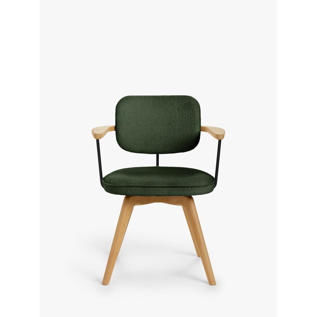 Suitable for short periods at your desk, our Soren chair has a smart, Scandi-inspired shape and we've made the frame from a combination of high-quality timbers. The splayed legs look distinctive and provide stability, while the fixed, integrated armrests encourage a good posture. Plus, the upholstered seat is foam-filled for extra comfort. Available in a soft, or textured bouclé fabric. Smart swivel function The seat is designed to swivel and then return to its original position. When you swivel round to leave your desk, the chair will automatically return to its forward-facing position. Protect your floor For added protection to your floor and furniture, we recommend using floor pads or mats where possible. Want to see it first? You may want to see and get a feel for the furniture in one of our shops before ordering. We'll be able to tell you where the range you'd like to view is on display.