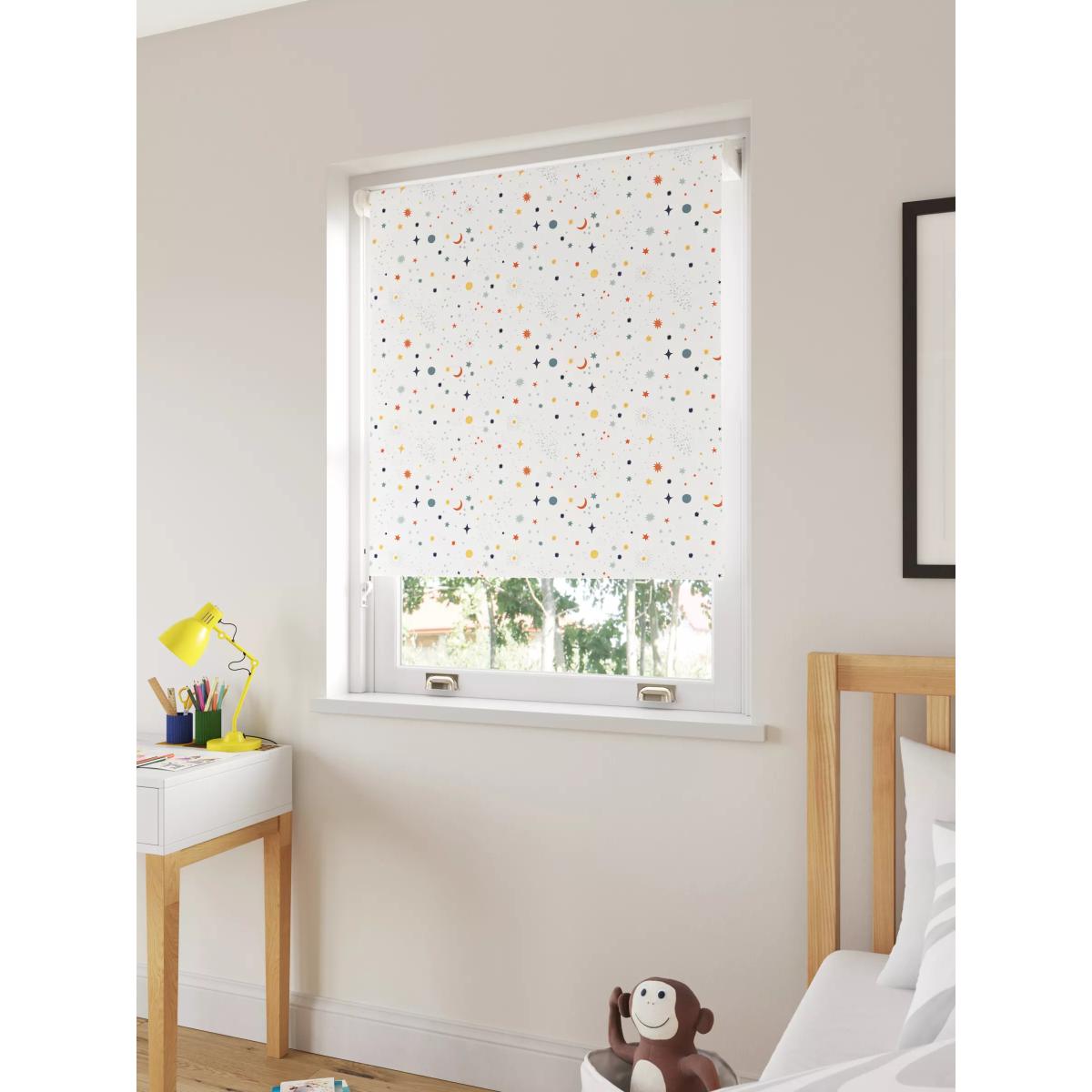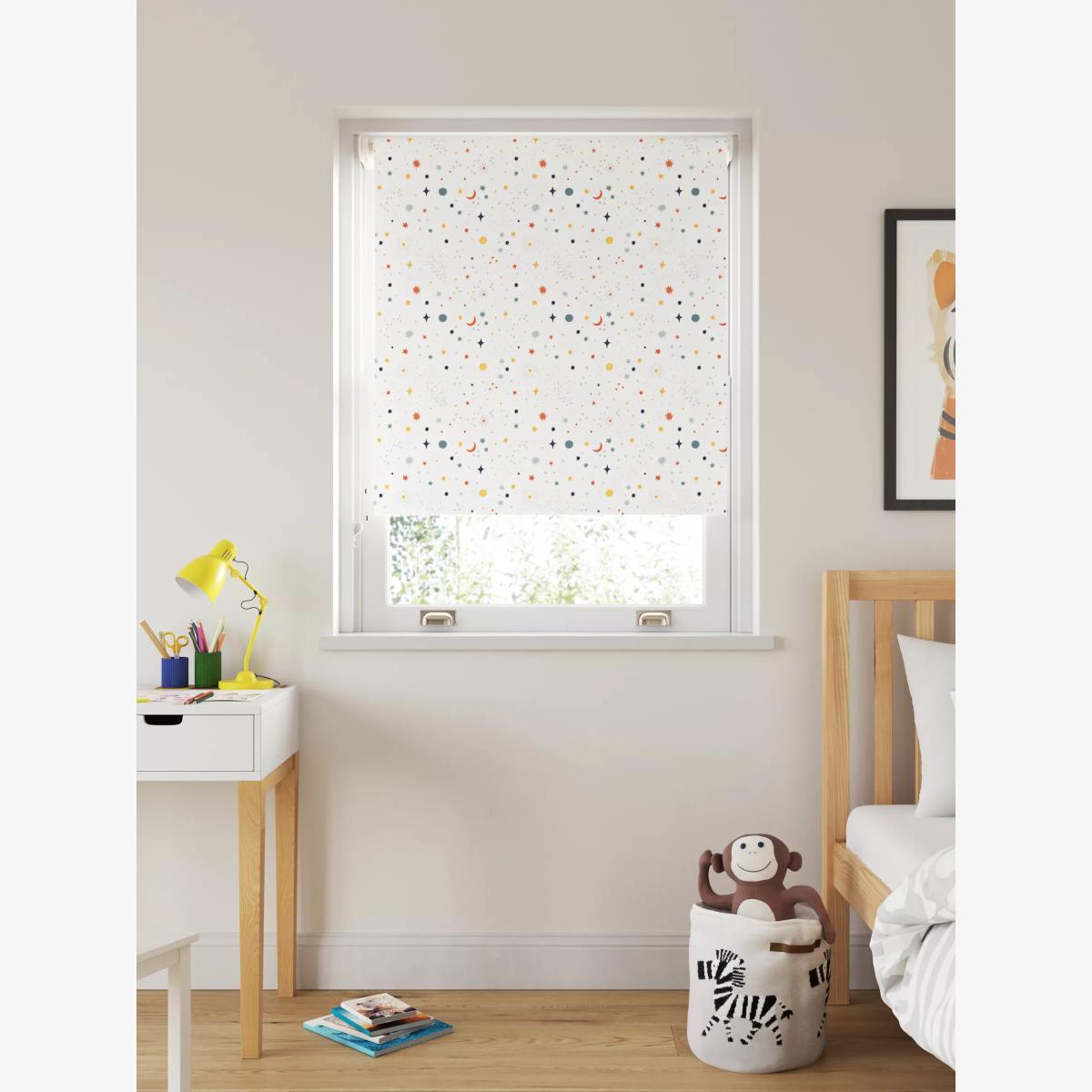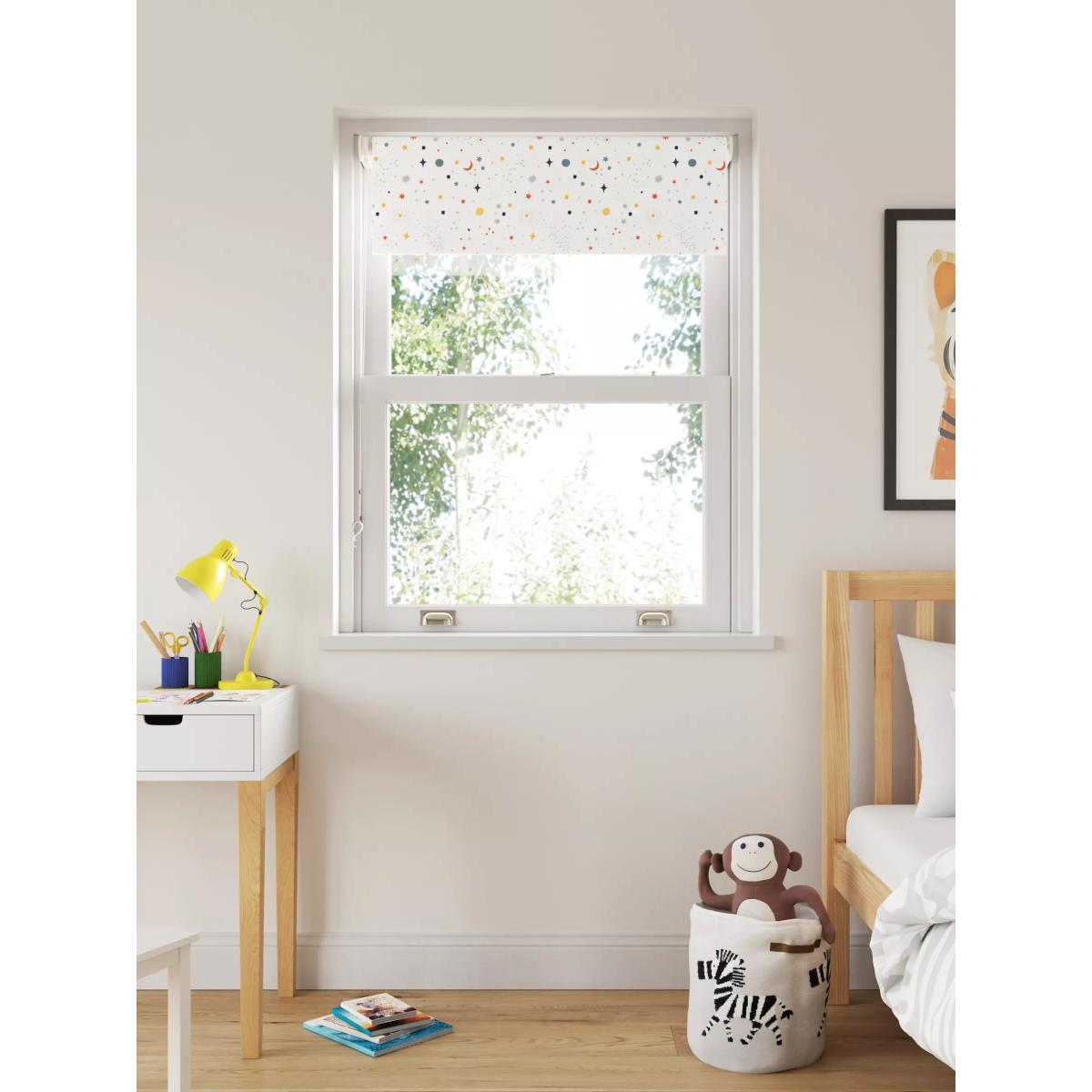 This fun blackout blind eliminates light and gives 100% privacy, allowing you to get a sound night’s sleep. Key features: Can be installed either inside or outside the window recess, to the wall or ceiling Can be standard or reverse rolled. Standard gives a close fit to the window, helping eliminate light. Reverse brings the material forward over the roll which conceals it and creates space between the blind and window Chain mechanism can be attached on the left or right-hand side, without affecting the way the blind is rolled Width can be cut to size Supplied with easy fit universal brackets Includes safety devices to keep children safe Warm in winter, cool in summer As the blackout lining on this blind blocks out sunlight it helps keep your room cool as well as dark. This 3 layer blackout coating also adds an extra layer of insulation, giving the blind thermal properties which aren’t found on non-blackout blinds. It protects against both heat loss and heat gain, regulating the temperature of your room so you’re kept warm in winter and cool in summer. Just be aware, we wouldn't recommend installing this blind in your kitchen or bathroom. The mix of cotton and linen fibres don't withstand humidity well so it may start to curl. It's best for bedrooms, lounges, studies, or any other room that doesn't get steamy. Worth knowing... The width stated in our product specifications is the total width of the blind including mechanisms and brackets. The width of the fabric alone will be a few centimetres less than this. Safety warning Young children can be strangled by loops in pull cords, chains, tapes and inner cords that operate the product. To avoid strangulation and entanglement, keep cords out of the reach of young children - cords may become wrapped around a child's neck Move beds, cots and furniture away from window covering cords Do not tie cords together. Make sure cords do not twist and create a loop More information on child safety can be found on our Child Safety Hub