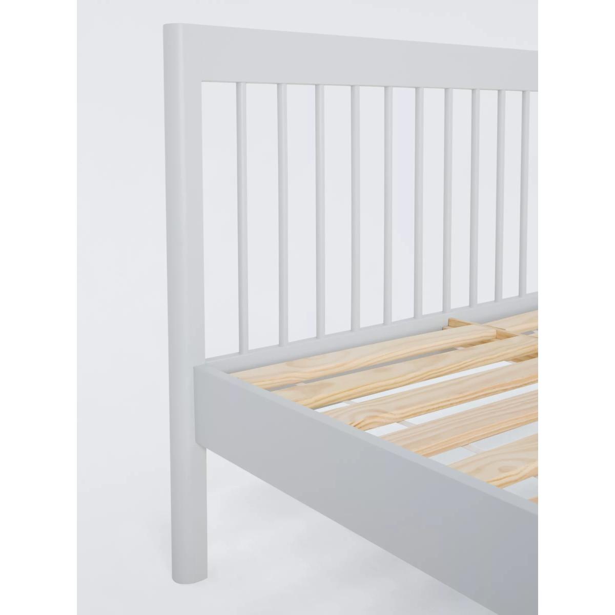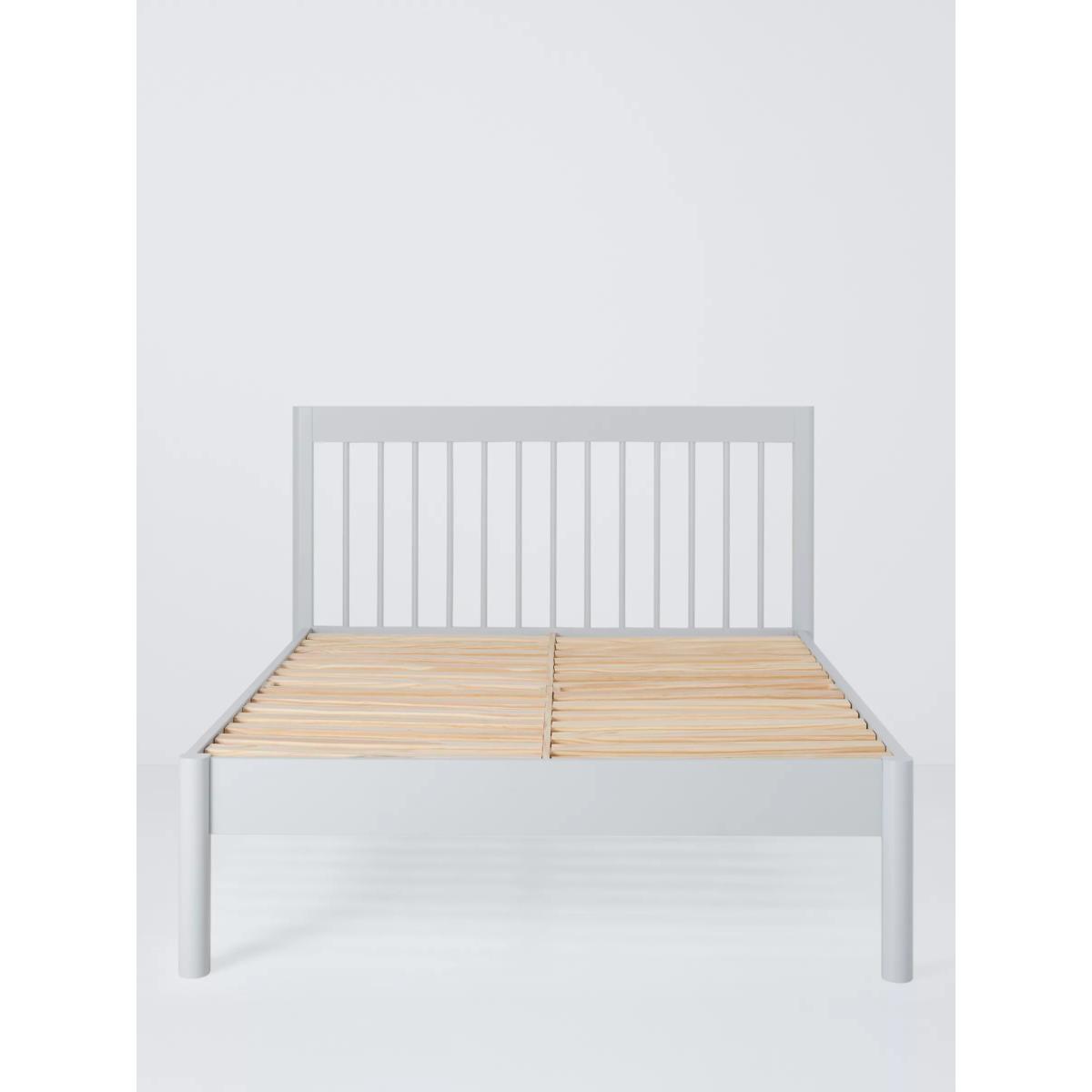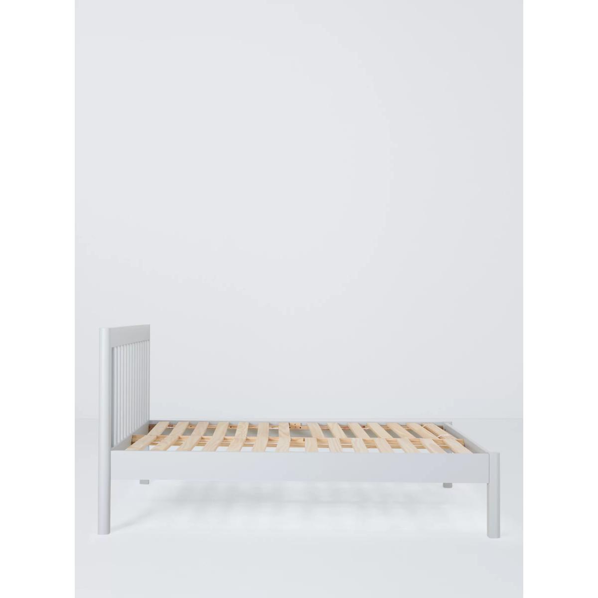 Our in-house designers focused on minimal design, sturdy woodwork and softer shapes when creating our Spindle range of bedroom furniture. Each piece is made from a combination of solid oak, pine wood, MDF and plywood, with a painted finish for durability. This bed frame has a charming, natural aesthetic thanks to its slatted headboard, rounded edges and shapely frame. There are supportive sprung slats in the base which your mattress will sit on top of, rather than sitting inside the frame. Simply layer your bed with linens and cosy throws and create the perfect sleep spot. Want to see it first? You may want to see and get a feel for the furniture in one of our shops before ordering. We'll be able to tell you where the range you'd like to view is on display.