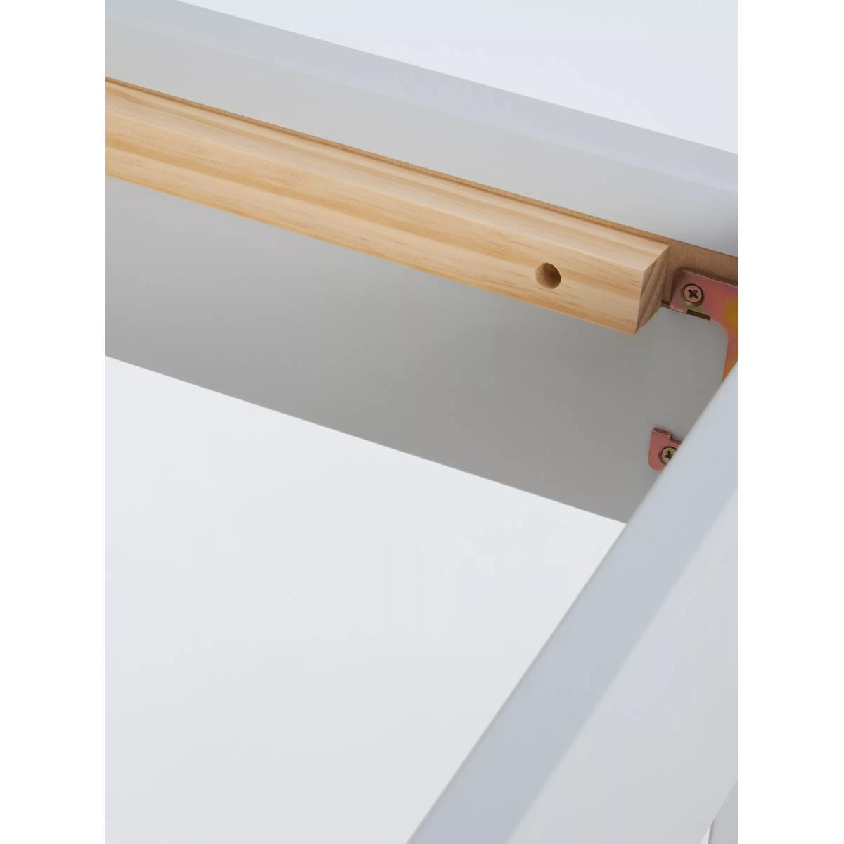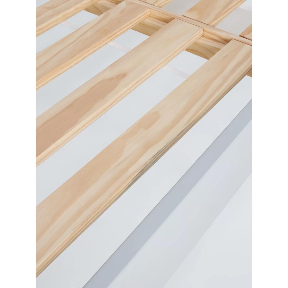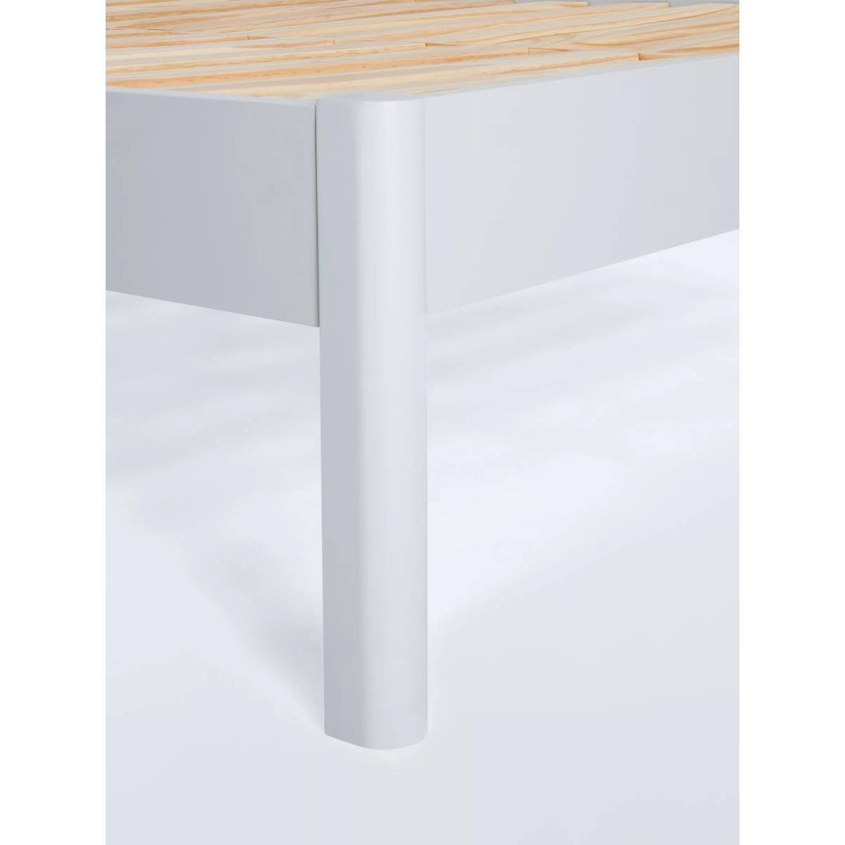 Our in-house designers focused on minimal design, sturdy woodwork and softer shapes when creating our Spindle range of bedroom furniture. Each piece is made from a combination of solid oak, pine wood, MDF and plywood, with a painted finish for durability. This bed frame has a charming, natural aesthetic thanks to its slatted headboard, rounded edges and shapely frame. There are supportive sprung slats in the base which your mattress will sit on top of, rather than sitting inside the frame. Simply layer your bed with linens and cosy throws and create the perfect sleep spot. Want to see it first? You may want to see and get a feel for the furniture in one of our shops before ordering. We'll be able to tell you where the range you'd like to view is on display.