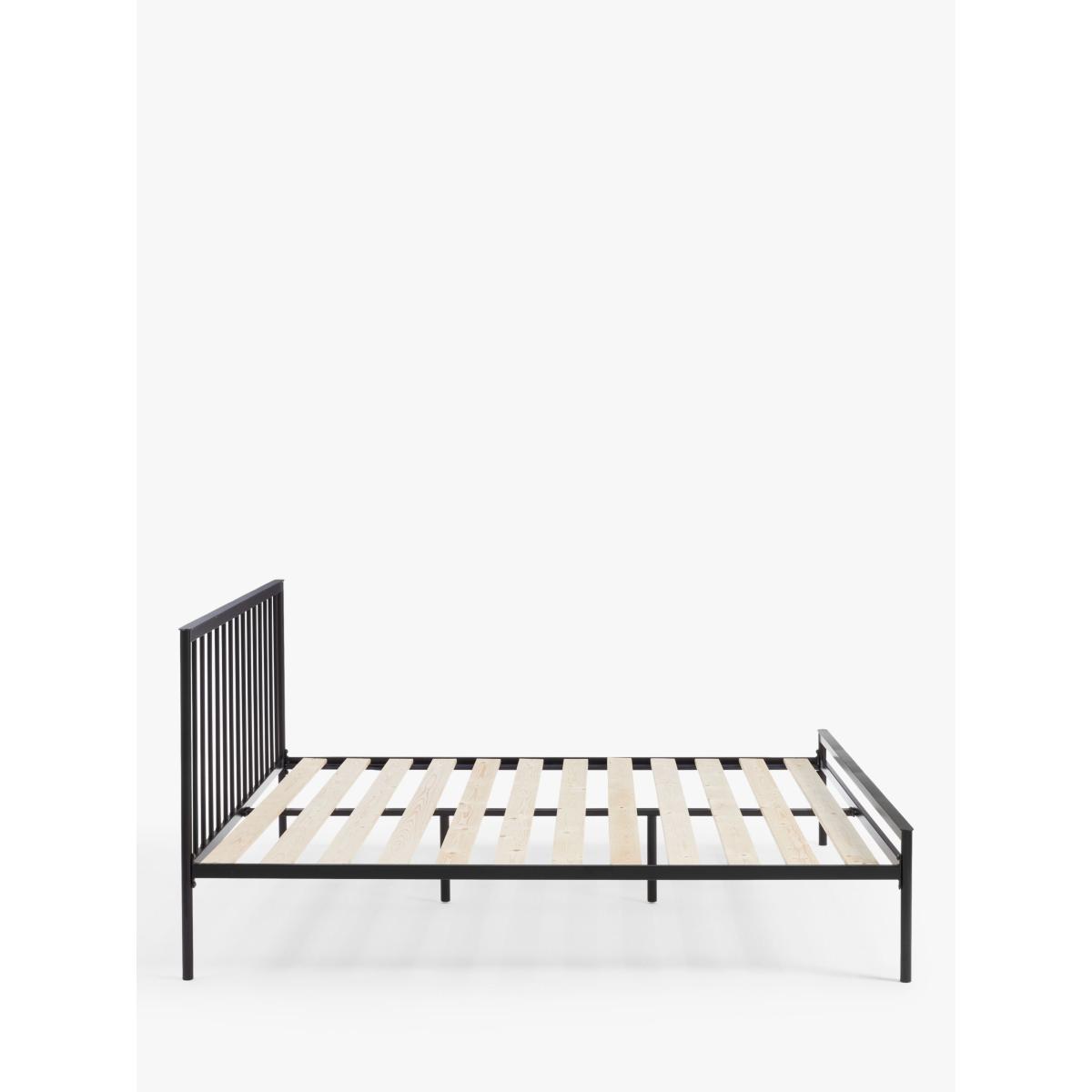 Sometimes simple is best so we've made this Spindle bed frame in a durable, uncomplicated and sleek design. Made in the UK this quality well-built frame is made from robust wrought iron and incorporates a spindle headboard with a lower foot end, enabling you to dress your bed with bold bed linen, colourful textiles and cosy throws. Sturdy slats made from solid Scandinavian pine wood provide a firmer base for your mattress and the powder-coated finish, in on-trend black, acts as a high-quality protective layer. Want to see it first? You may want to see and get a feel for the furniture in one of our shops before ordering. We'll be able to tell you where the range you'd like to view is on display.