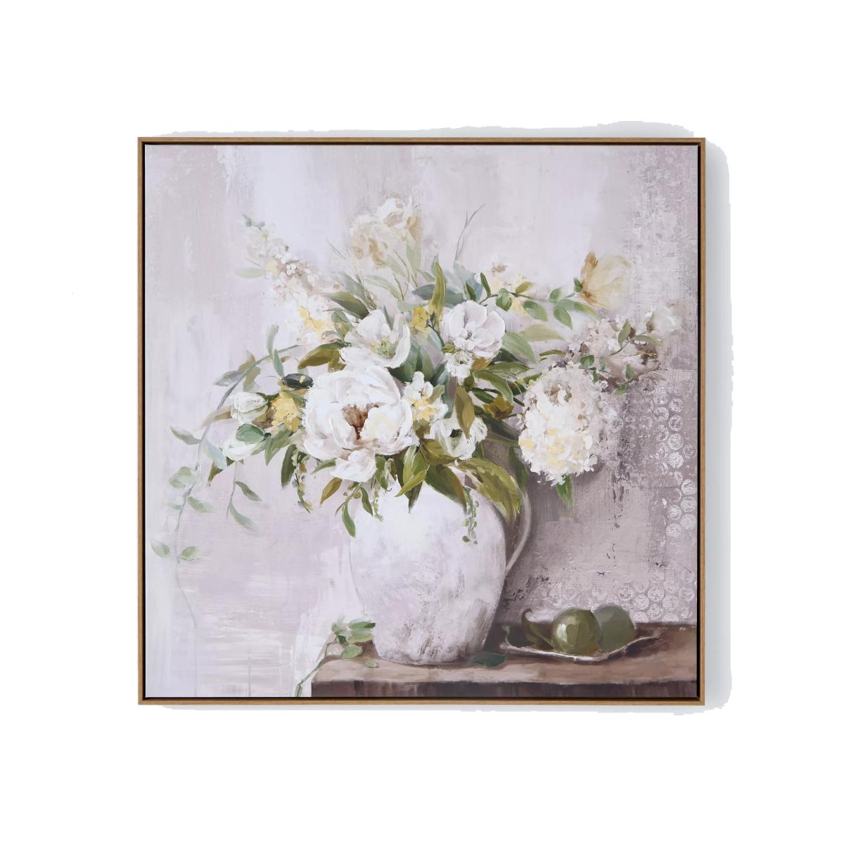 The Still Life Floral canvas is a great piece for adding a touch of calm elegance to a variety of interiors. I love its understated colour palette, which makes it versatile enough to work in both neutral and softer colour schemes, as well as in more vibrant settings as a focal point. It’s especially effective in living rooms or bedrooms where you want to bring in a sense of serenity, but it can also complement a rustic or classic scheme beautifully. Practical styling tips include framing it above a sideboard or console table to create a balanced vignette - pairing it with smaller botanical accessories or natural materials like wood or linen accents helps to keep the look cohesive. Its size makes it ideal for filling a central wall, providing visual interest without overwhelming the space.