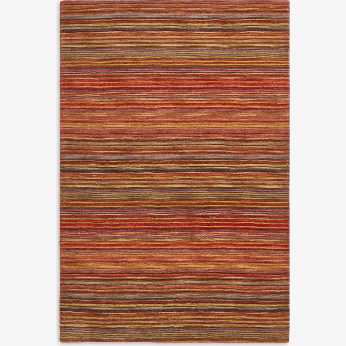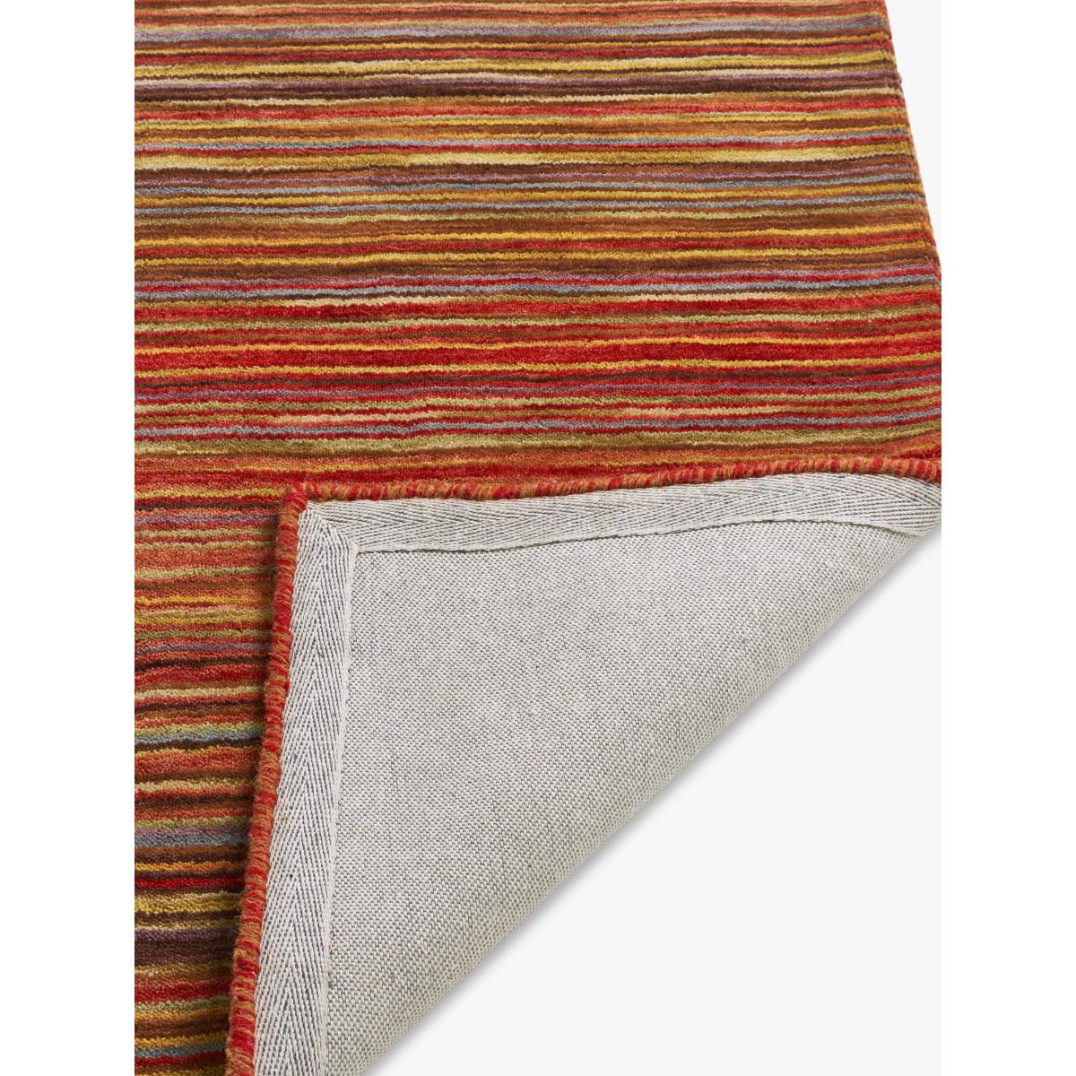 Inspired by traditional rug design, the rich colours of this rug offer an inspiring take on a classic stripe pattern. Offered in 100% wool for a durable yet soft feel, the mixed colour palette will make this a vibrant addition to a living or bedroom. This rug is loomed by hand, a traditional shuttle process in which material is laced together to create a strong and durable weave. The benefits of a wool rug Warm and durable, wool feels beautifully soft underfoot and is long-lasting Naturally flame-retardant and odour resistant Water repellent so easier to clean Naturally biodegradable, wool is part of the circular economy and contains no micro plastics About your new rug We recommend John Lewis & Partners Rug Hold Underlay. It prevents your rug from moving underfoot and protects against colour transfer to the floor As this rug is made using natural fibres, shedding is to be expected. This will reduce over time, and should not have an impact on the lifespan or performance of your rug. When you first get your rug, please use the brush attachment on your vacuum cleaner whilst the shedding dies down. After that, when vacuuming your rug, use suction only. Rotating brushes may damage the fibres. When vacuuming your rug, use suction only. Rotating brushes may damage the fibres Blot any spills with a clean, dry cloth. Do not rub or use harsh detergents. Latex backed therefore not suitable for underfloor heating. Specialist cleaning recommended. Attend to spillages immediately and blot with a clean, dry cloth to prevent staining. Dilute a small amount of appropriate carpet shampoo in water. Dampen a colourfast cloth in the diluted shampoo solution and dab the rug, lightly agitating, moving in the direction of the pile. Treat the whole rug and not just the affected area. To restore the appearance of the affected area, use a soft bristled brush to gently comb in the direction of the pile. Allow the rug to thoroughly dry.