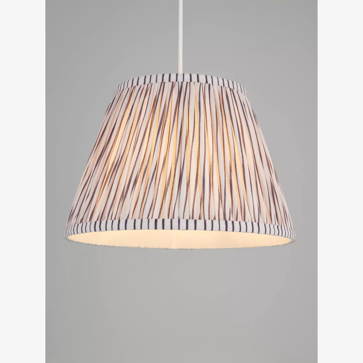 I really like the John Lewis stripe lampshade for its clean, timeless look that can complement a variety of interiors. Its classic stripe pattern adds visual interest without overpowering the space, making it versatile for both contemporary and traditional settings. It works particularly well in living rooms, bedrooms, or even a home office where a subtle touch of pattern can brighten up the environment. Practical styling tips include pairing it with neutral or solid-coloured lamp bases to keep the focus on the shade, and placing it in settings with plenty of natural light to enhance its pattern. It's a reliable choice for adding a bit of character without sacrificing style or functionality.