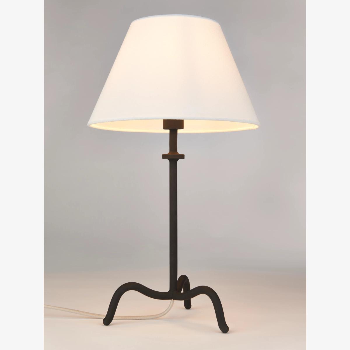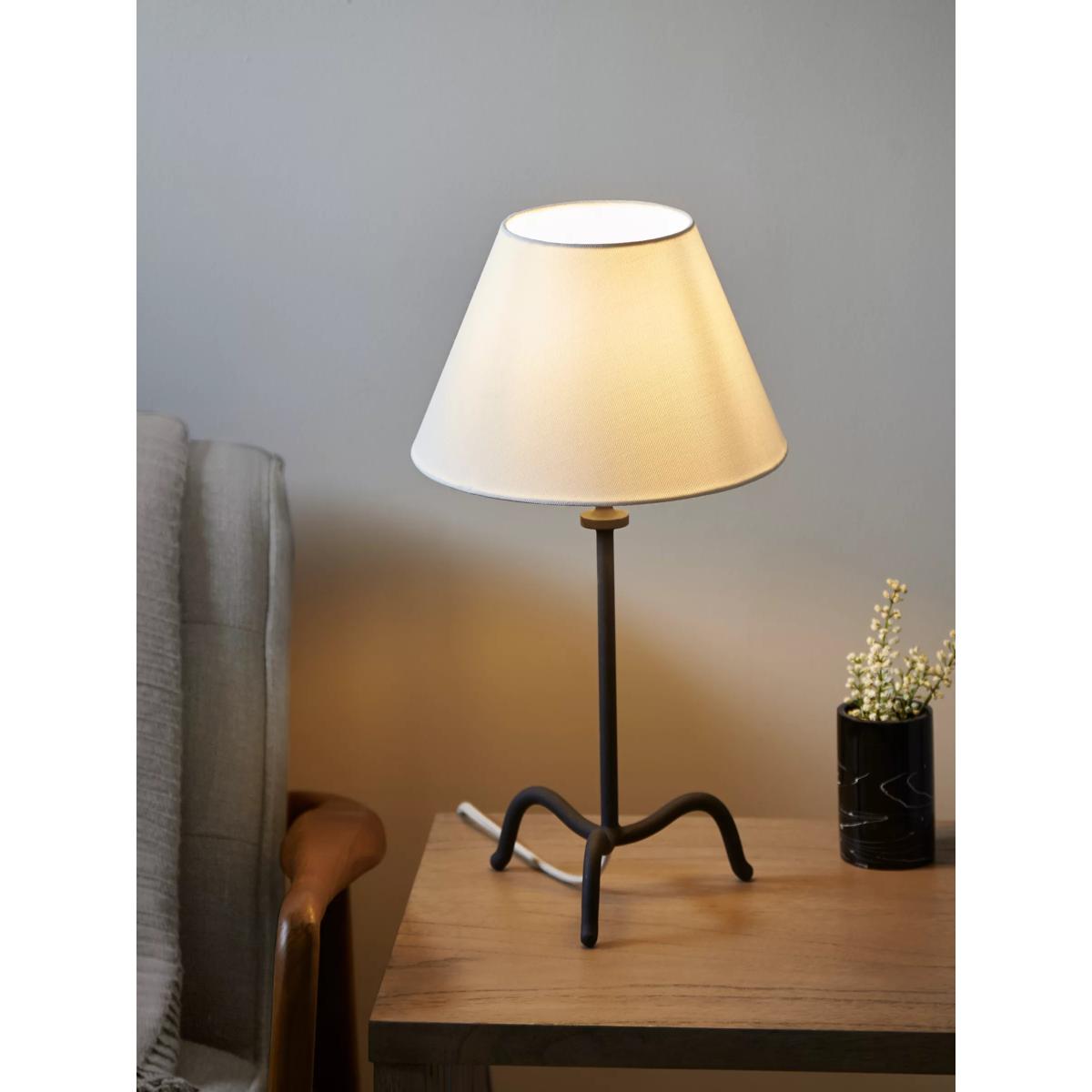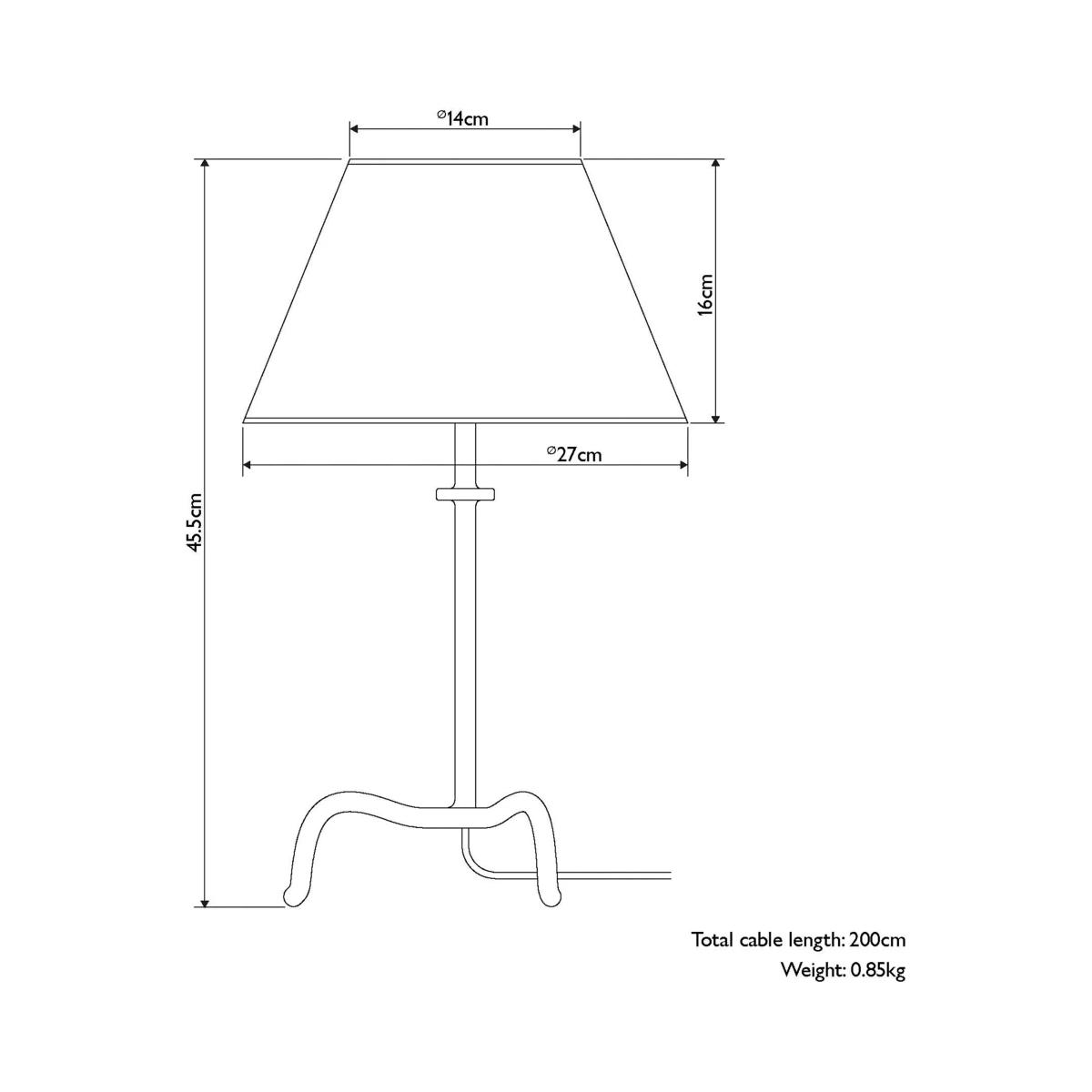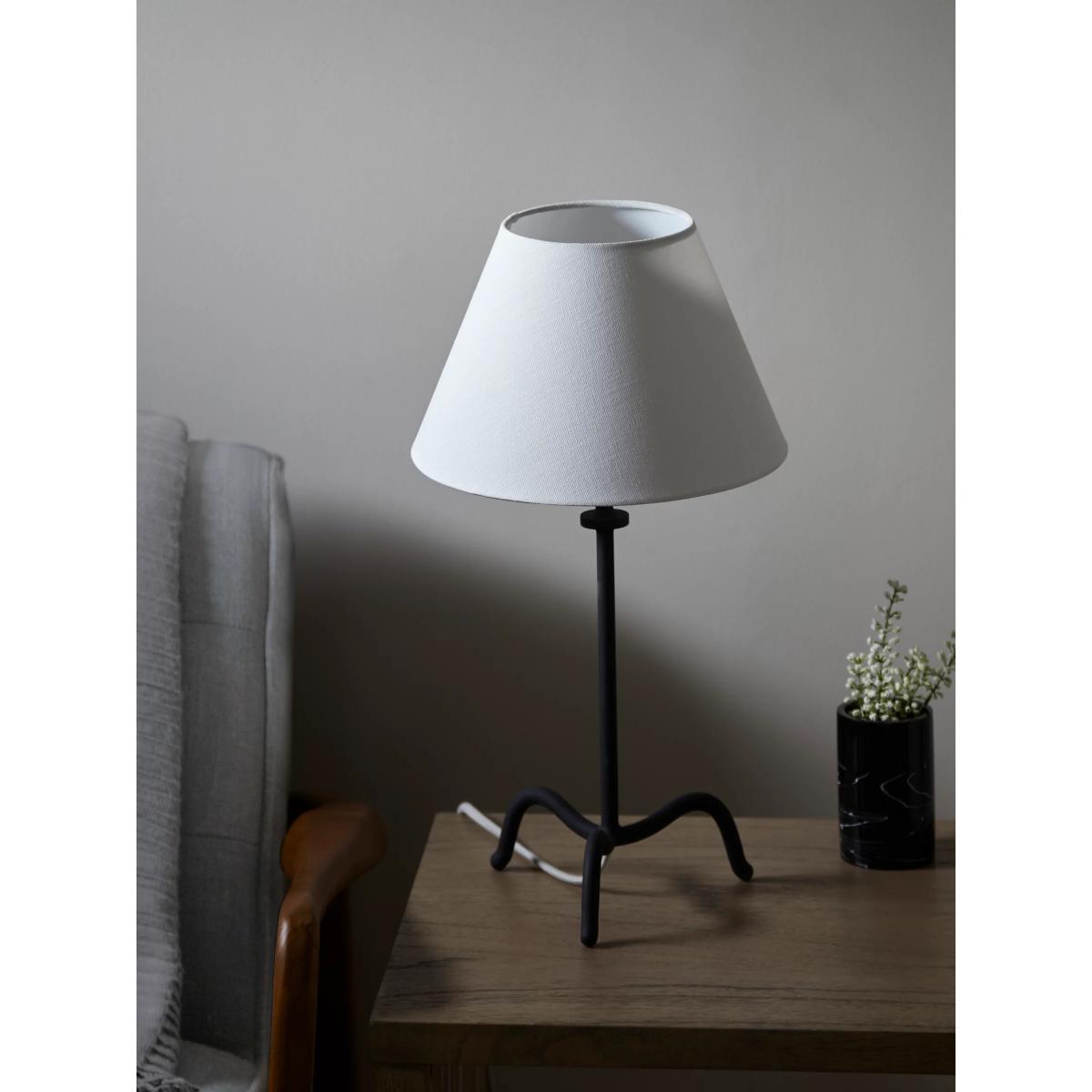 Designed for a timeless metal-worked look, this table lamp will bring its signature style to any home. A modern, forged-effect paint finish and subtly honed details elevate its tripod base silhouette. Finished with a faux linen shade and a braided cable.