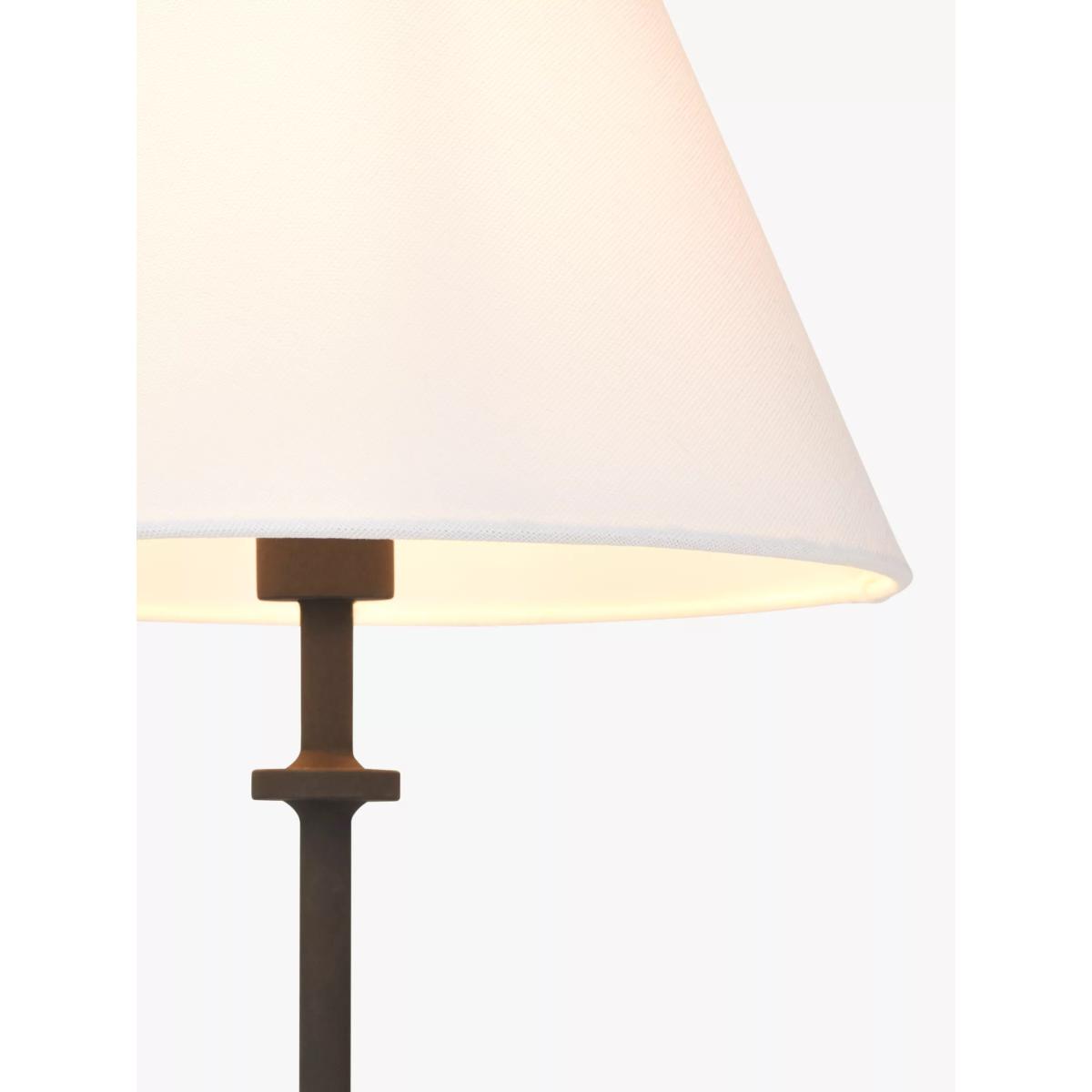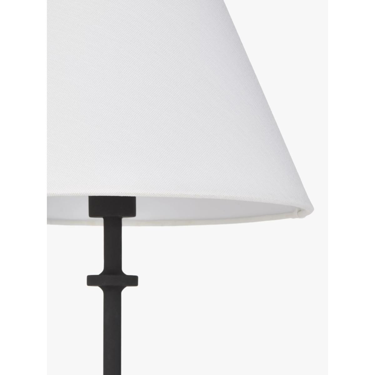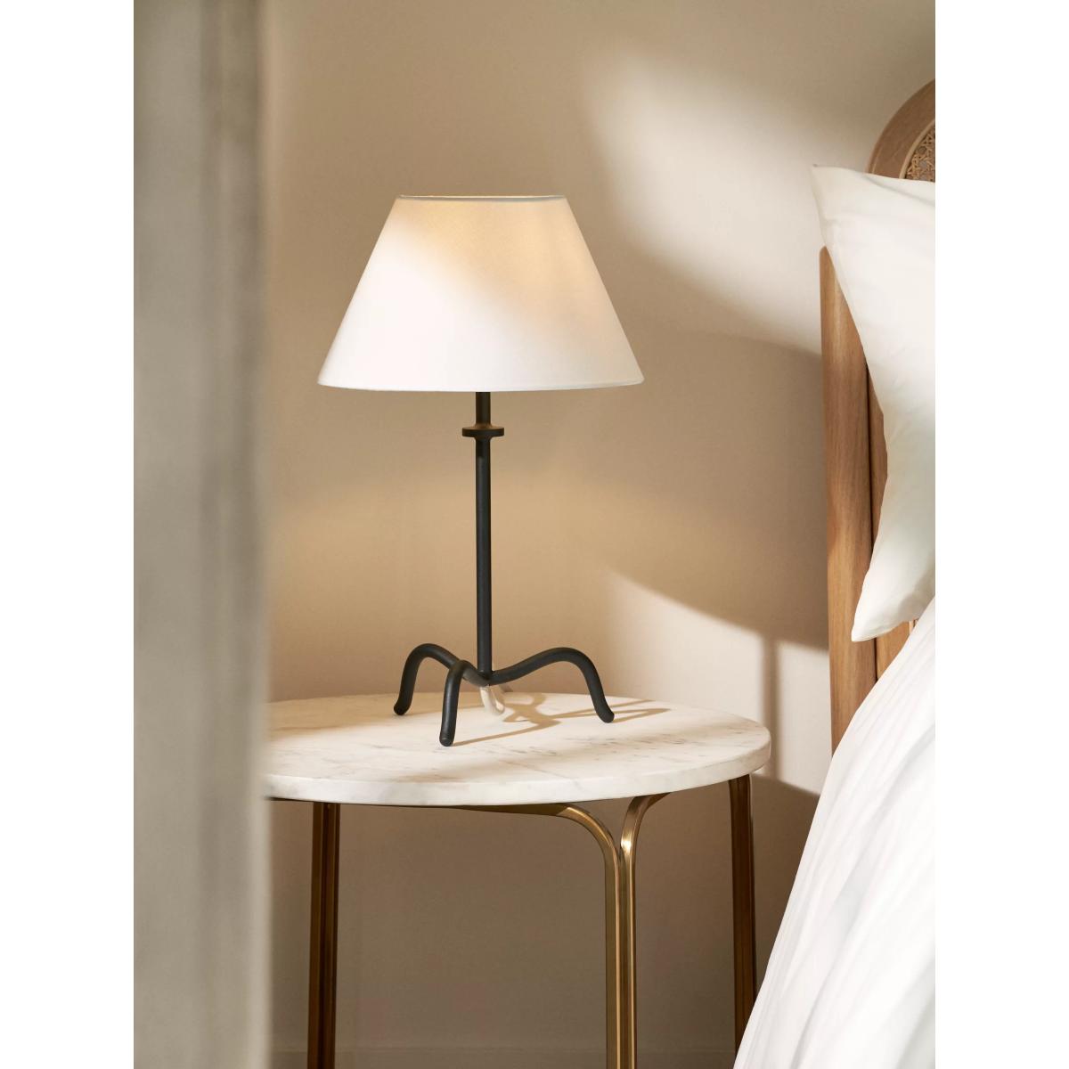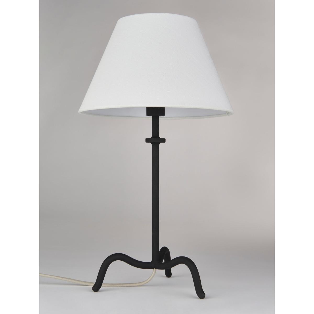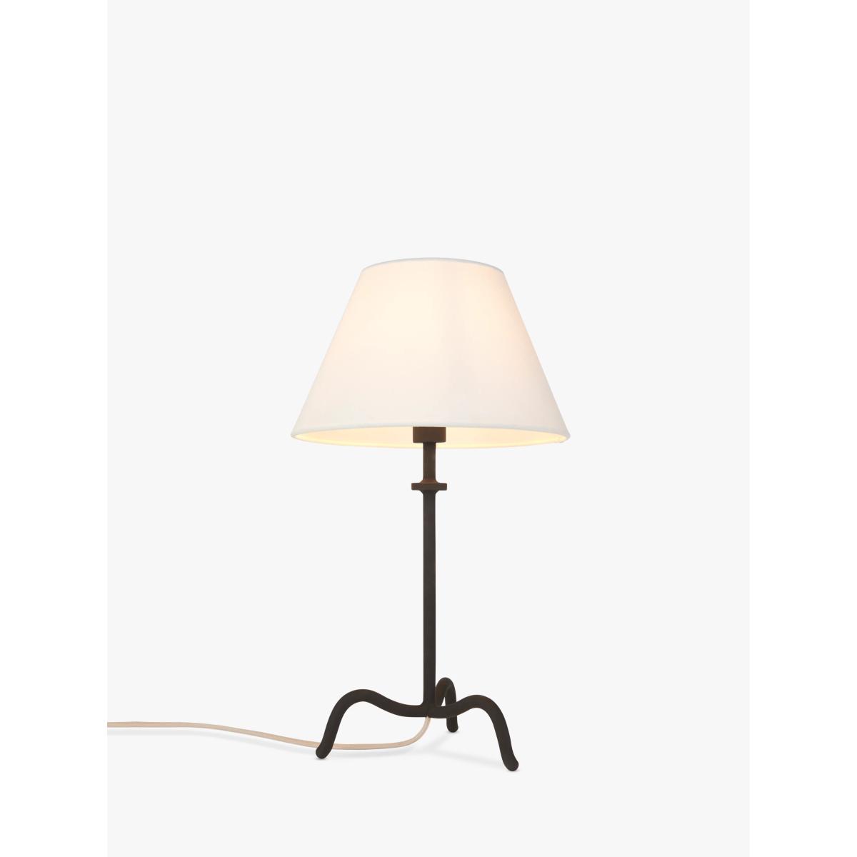 Designed for a timeless metal-worked look, this table lamp will bring its signature style to any home. A modern, forged-effect paint finish and subtly honed details elevate its tripod base silhouette. Finished with a faux linen shade and a braided cable.
