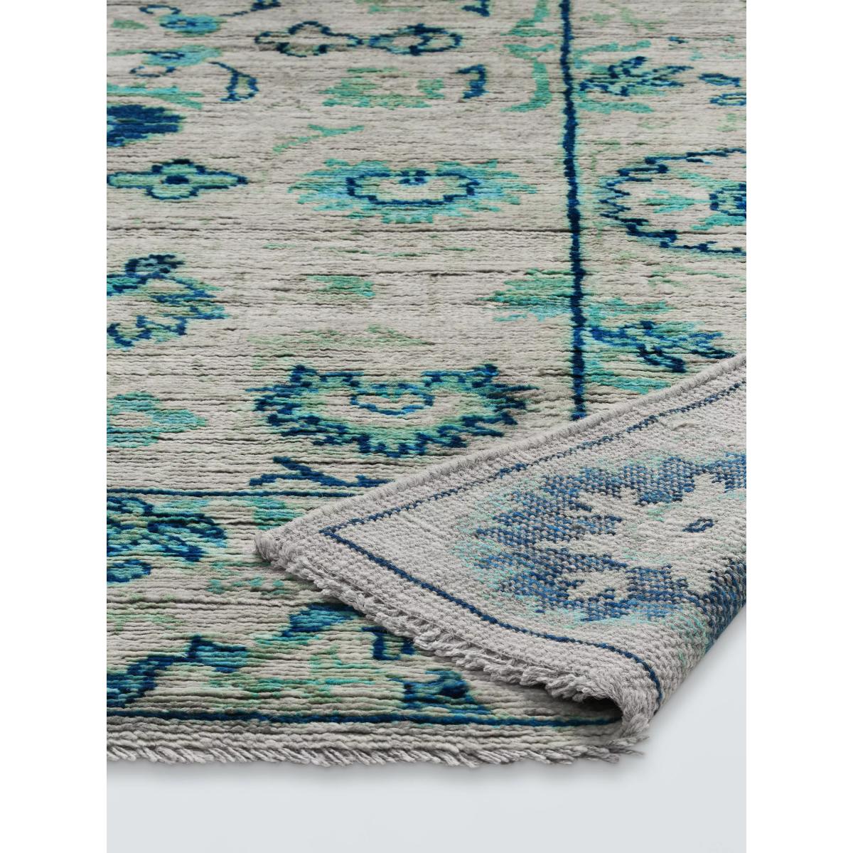 Beautifully intricate with swirling florals and motifs, the Suzani rug is inspired by centuries of traditional rug design. Accented with a classic border and tassels, it's made from 100% warming wool. This rug has been knotted by hand, the oldest and most individual way a rug can be made. This involves an intricate process of weaving by hand on a loom where yarns are tied one at a time, giving the rug a durable construction. The benefits of a wool rug Warm and durable, wool feels beautifully soft underfoot and is long-lasting Naturally flame-retardant and odour resistant Water repellent so easier to clean Naturally biodegradable, wool is part of the circular economy and contains no micro plastics About your new rug We recommend John Lewis & Partners Rug Hold Underlay. It prevents your rug from moving underfoot and protects against colour transfer to the floor As this rug is made using natural fibres, shedding is to be expected. This will reduce over time, and should not have an impact on the lifespan or performance of your rug. When you first get your rug, please use the brush attachment on your vacuum cleaner whilst the shedding dies down. After that, when vacuuming your rug, use suction only. Rotating brushes may damage the fibres. When vacuuming your rug, use suction only. Rotating brushes may damage the fibres Blot any spills with a clean, dry cloth. Do not rub or use harsh detergents. Attend to spillages immediately and blot with a clean, dry cloth to prevent staining. Dilute a small amount of appropriate carpet shampoo in water. Dampen a colourfast cloth in the diluted shampoo solution and dab the rug, lightly agitating, moving in the direction of the pile. Treat the whole rug and not just the affected area. To restore the appearance of the affected area, use a soft bristled brush to gently comb in the direction of the pile. Allow the rug to thoroughly dry.