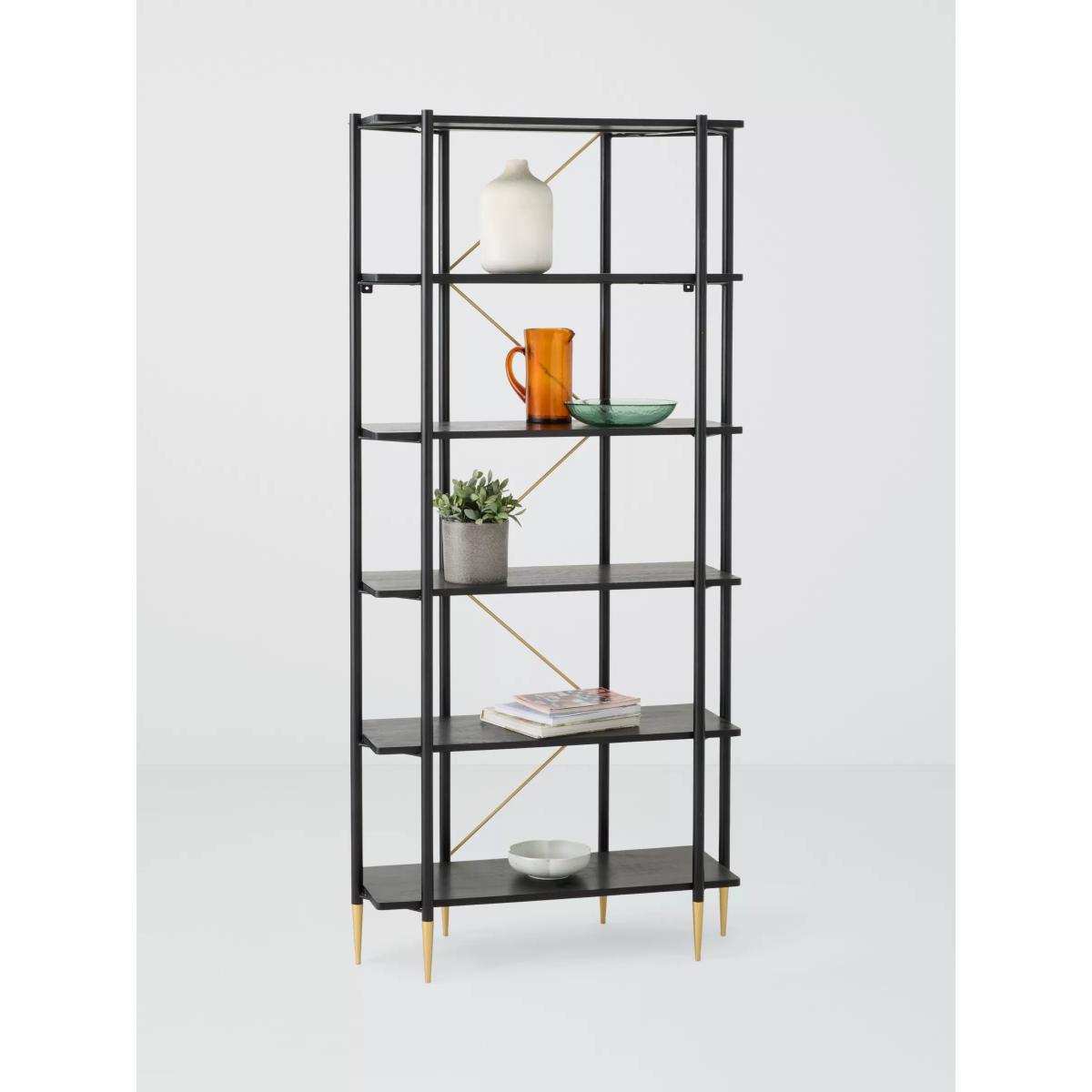 The John Lewis + Swoon Cole Shelf Unit in black is a sleek, contemporary piece that works well in a variety of interiors, from modern minimalism to industrial styles. Its open, grid-like design offers an effortless way to display books, decorative objects, or plants, adding visual interest without feeling bulky. I love styling it with a mix of products-think organised stacks of books, contrasting textures, and subtle colour pops-to create a curated, layered look. Practical tip: utilise the different shelf heights for varied display heights and consider leaning artwork or framed photos on the shelves to introduce personality. Its versatile design makes it suitable as a statement piece in living rooms, home offices, or even bedrooms.