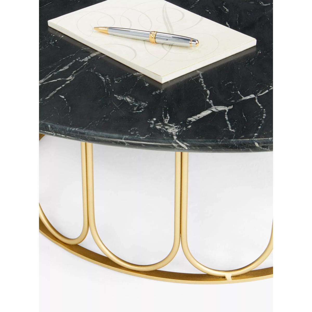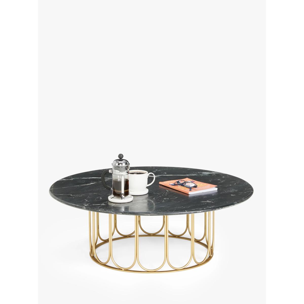 Designed by Swoon, made by us. With a shared commitment to exceptional design and quality, we've collaborated to create an exclusive furniture collection for the modern home. The Emlin coffee table provides a great focal point to your living space, combining a black, solid marble top with a circular, brass finish frame whose delicate tubular design belies its sturdy construction. Good to know Marble is a natural material so you might find variations in the veining detail or colour of the surface top. These distinctive qualities give each table a unique look, as no two pieces will be exactly the same. Want to see it first? You may want to see and get a feel for the furniture in one of our shops before ordering. We'll be able to tell you where the range you'd like to view is on display.