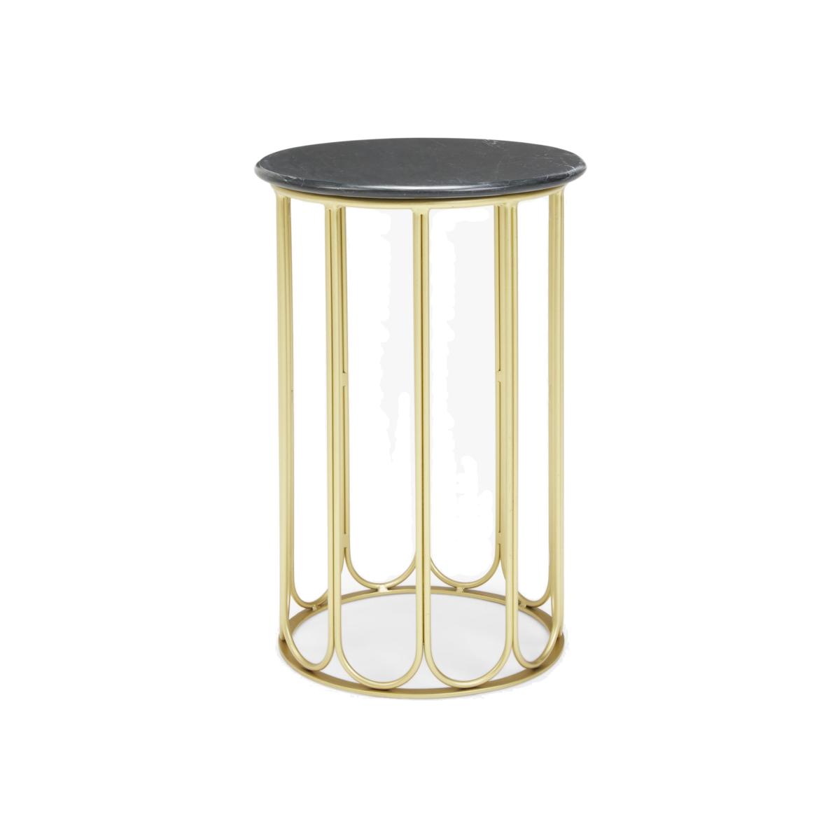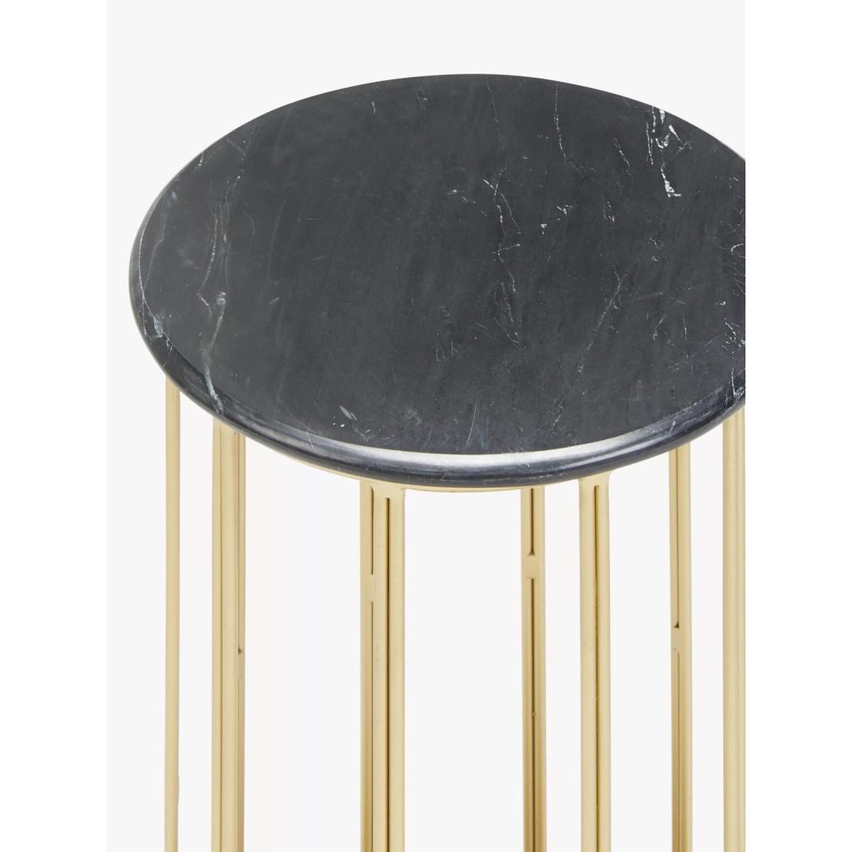 Designed by Swoon, made by us. With a shared commitment to exceptional design and quality, we've collaborated to create an exclusive furniture collection for the modern home. The Emlin side table provides a great focal point to your living space, combining a black, solid marble top with a circular, brass finish frame whose delicate tubular design belies its sturdy construction. Good to know Marble is a natural material so you might find variations in the veining detail or colour of the surface top. These distinctive qualities give each table a unique look, as no two pieces will be exactly the same. Want to see it first? You may want to see and get a feel for the furniture in one of our shops before ordering. We'll be able to tell you where the range you'd like to view is on display.