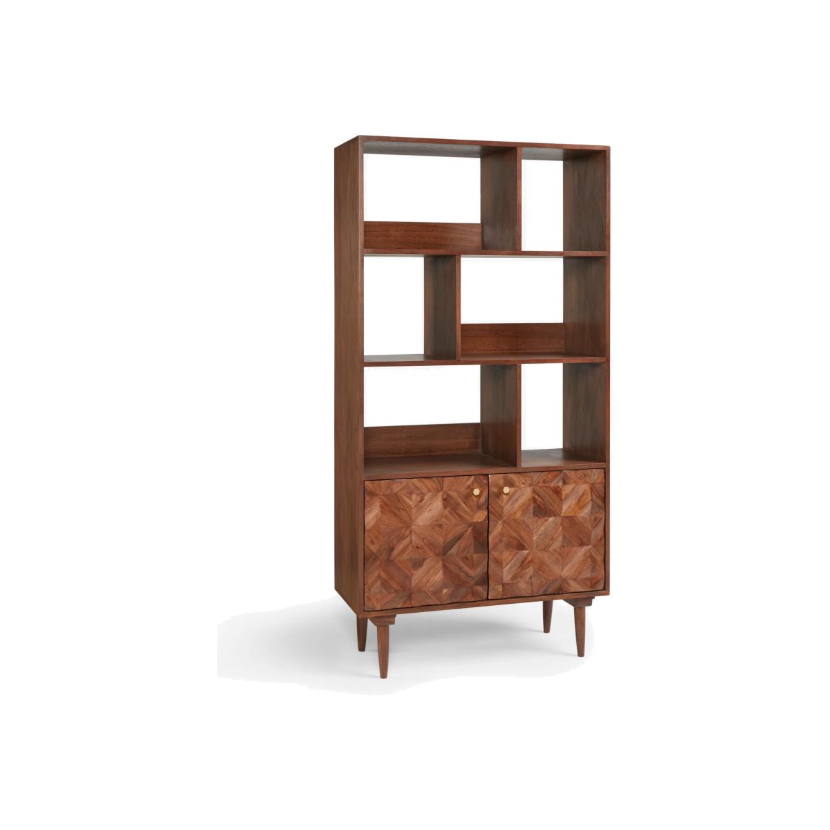Designed by Swoon, made by us. With a shared commitment to exceptional design and quality, we've collaborated to create an exclusive furniture collection for the modern home. Built from a combination of high-quality timbers including acacia wood, our Franklin shelving unit has been made using marquetry techniques to create its distinctive, geometric facade. The cupboard doors have been cut at angles and then reassembled in a tessellated design that plays with light and shadows to highlight the variety of its natural wood grains. As well as an interior shelf, there are also six open shelves offering space to hold books or display your favourite treasures. Want to see it first? You may want to see and get a feel for the furniture in one of our shops before ordering. We'll be able to tell you where the range you'd like to view is on display.