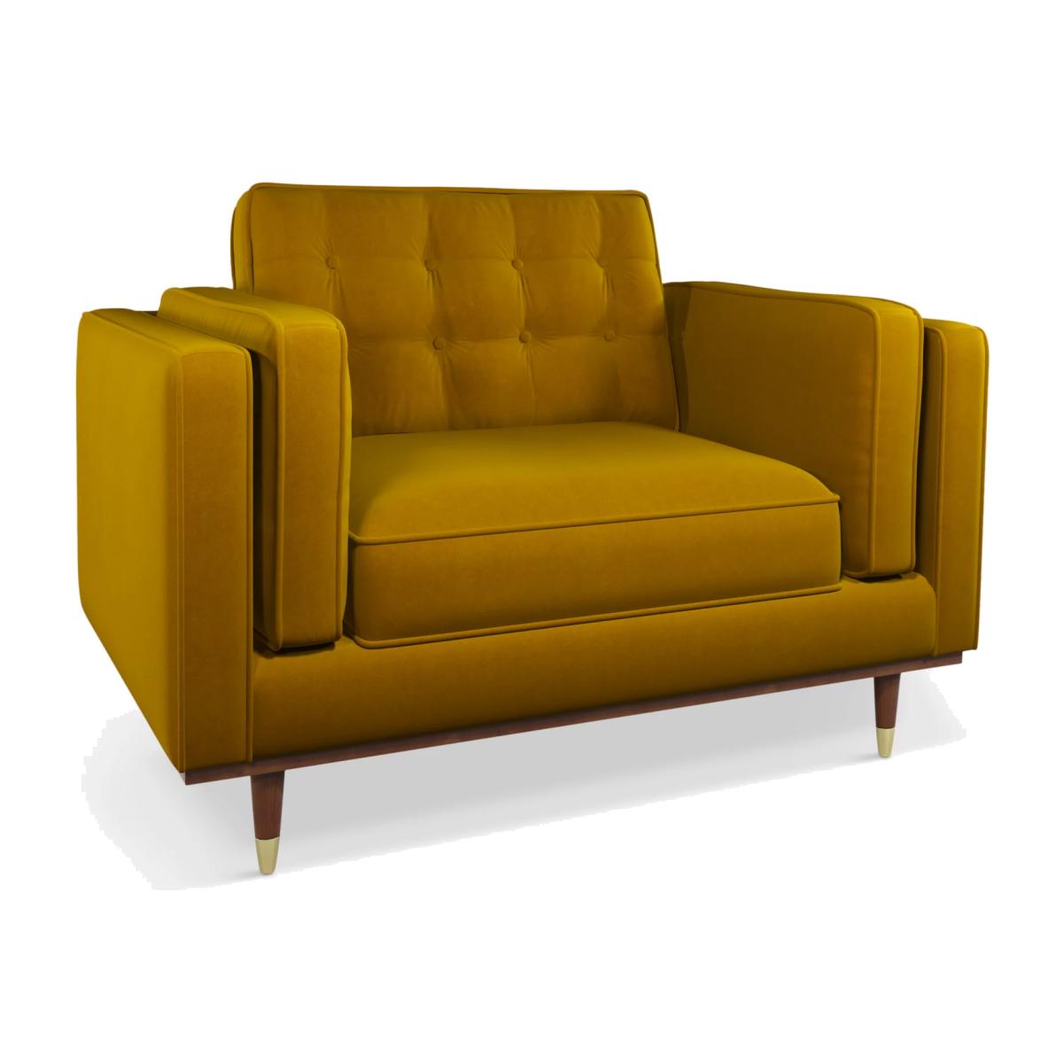 Product Information SEL text:Selling text:The Lyon racks up the points for both style and comfort. The button-tufted back and piping details are style statements, whilst the brass-capped tapered legs create a Mid-Century feel. Bolster cushions along the inside of the arms make a comfortable spot for relaxing. Measuring Up for Furniture Guide Sofas, Sofa Beds & Chairs Buying Guide Upholstery Care Guide