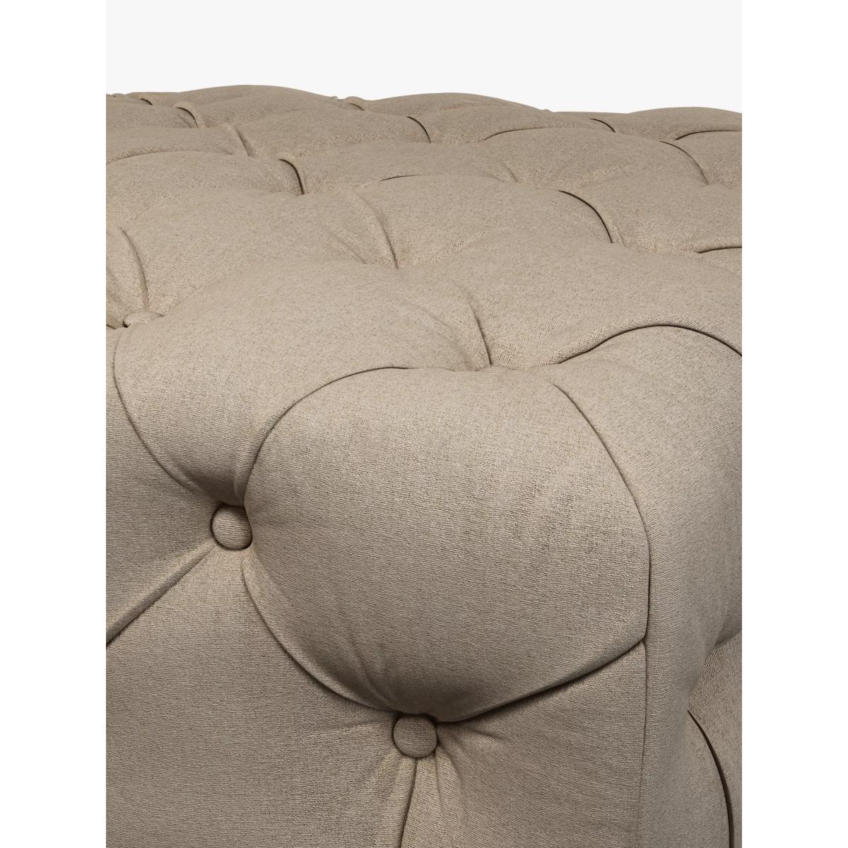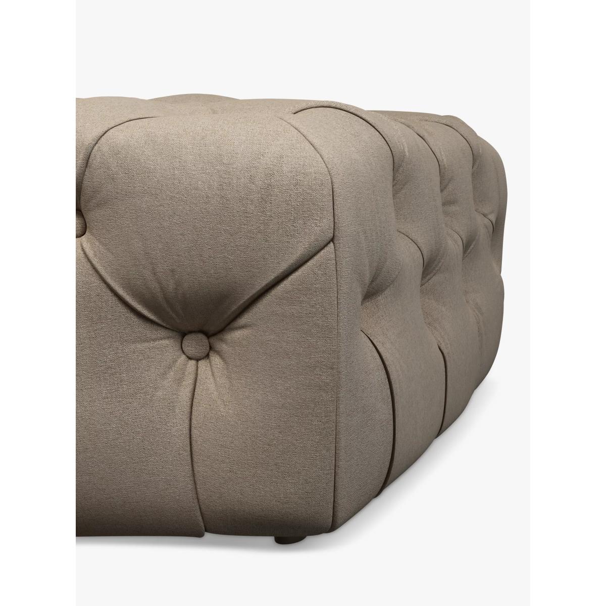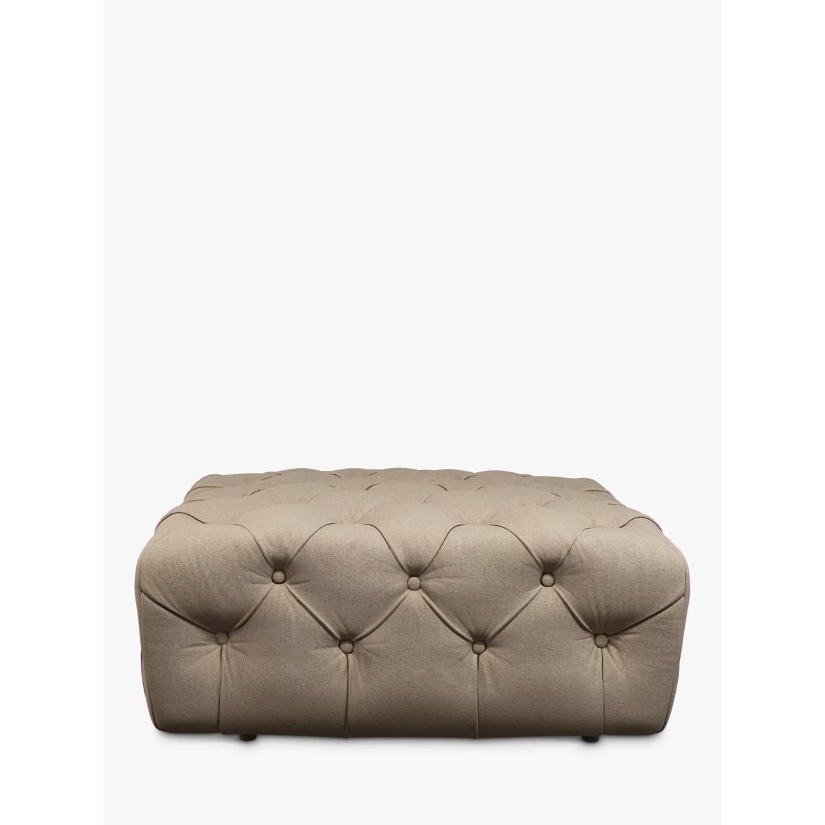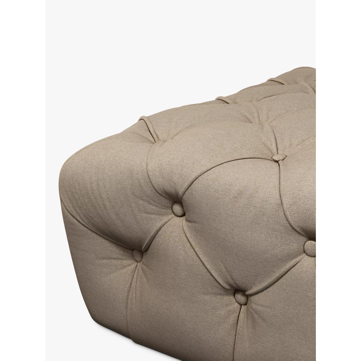 This footstool is a versatile piece that adds a touch of sophistication to a variety of interiors. I love its classic tufted design and dark legs, which work particularly well in both traditional and contemporary spaces. It’s perfect as a relaxed spot for resting your feet or even as extra seating when you’re hosting. For styling, consider pairing it with neutral or muted furnishings to let its structured form stand out, or place it in a layered setting with textured throws and cushions for a cosy, inviting look. Practical tips include using it as a coffee table with a tray on top to combine function and style, or placing it near an armchair to create a comfortable reading nook. Its neutral tone makes it adaptable, ensuring it stays timeless in your living room or lounge.