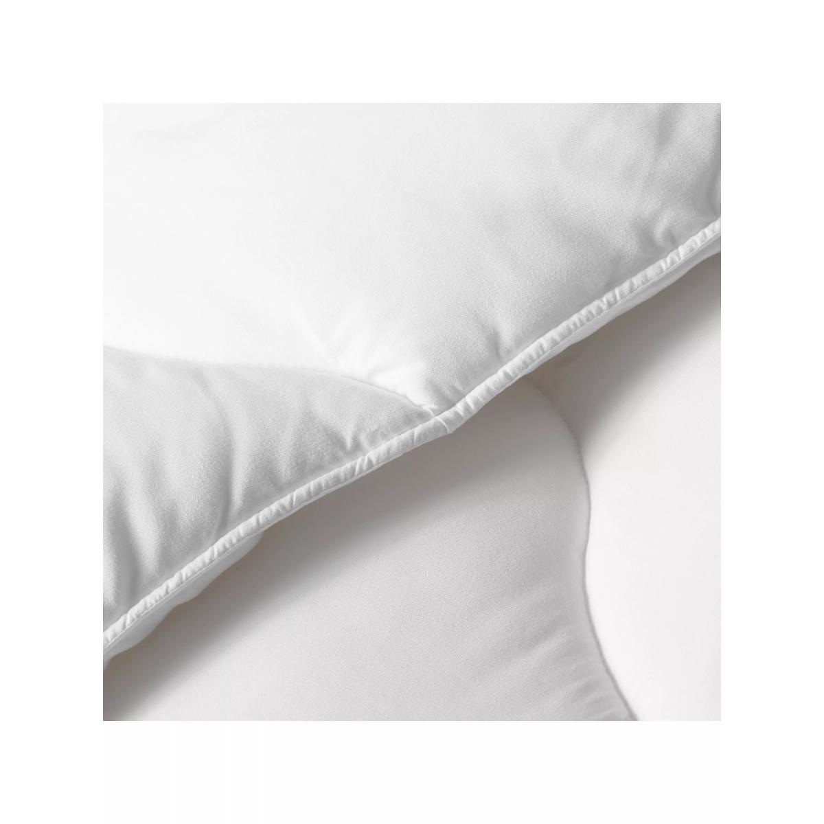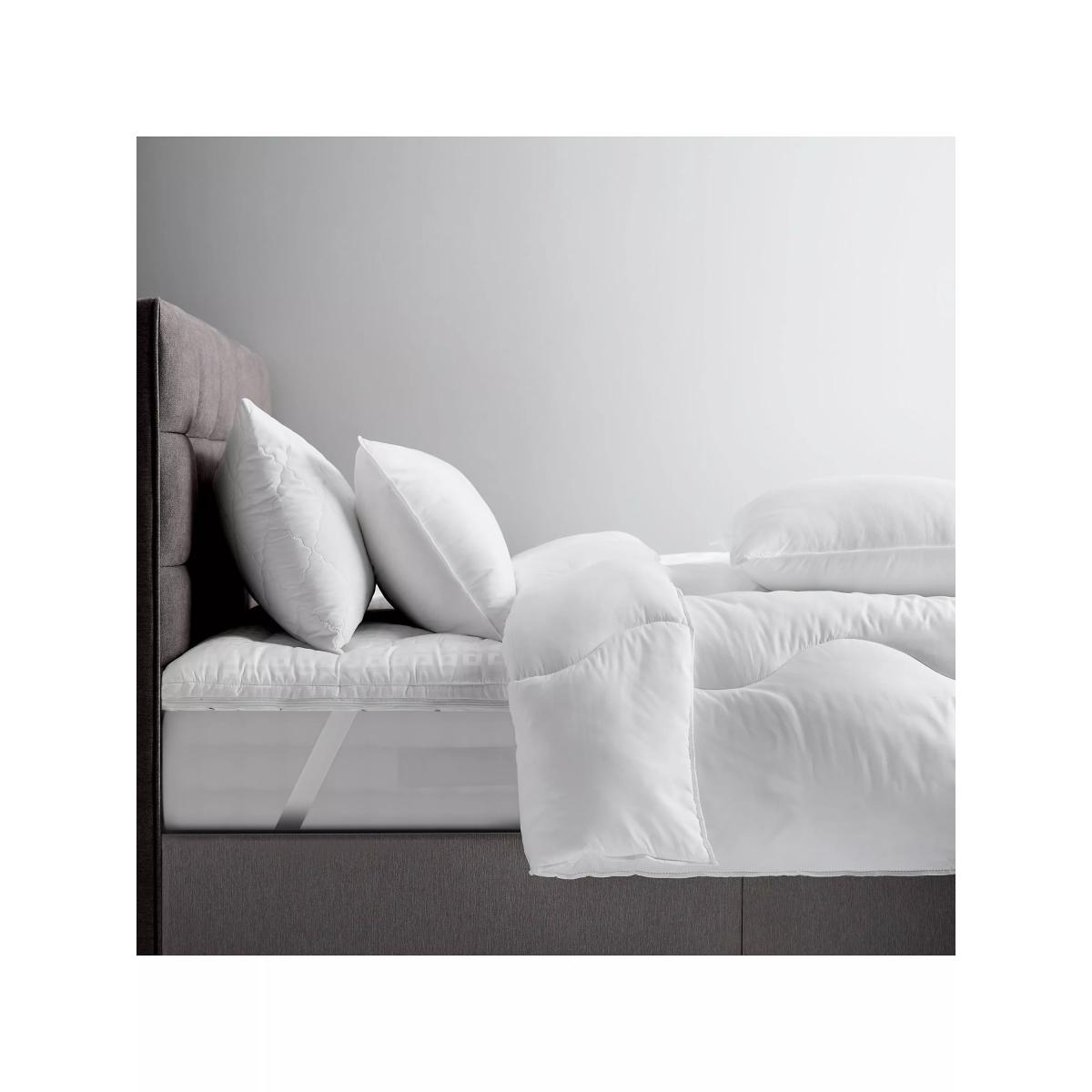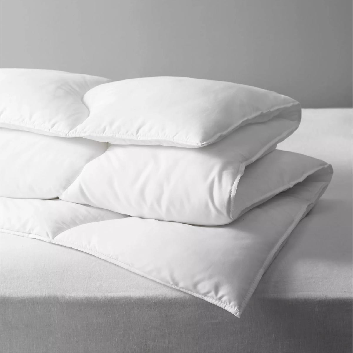 Easy to care for, this duvet can be washed at 60°C time after time. The microfibre cover is peach skin soft for a comfortable feel and the Sonicseam technology provides neater edging with no risk of fraying. This product contains a 100% GRS certified polyester filling, certified by Control Union, license number: CU1000619. Suitable for regular washing Washable at 60°C, for a hygienic clean that will kill dust mites. Warmth without weight This premium filling creates an airy and open structure that traps heat, so it gives excellent insulation while being much lighter. This means you feel perfectly warm, without being weighed down. Quick drying Dries quicker compared to standard duvet drying times, meaning it’ll be ready to go back on the bed in no time. Good to know Instead of using thread, we've used ultrasonic technology to seal the seams of this duvet. This creates a consistent seam with a strong and high quality finish and ensures no loose threads, fraying or bulky joins. It also means that production is faster and more environmentally friendly as we can produce the duvets back-to-back, which reduces the amount of energy required and saves waste from excess thread. Have you thought about a new pillow? Shop here.