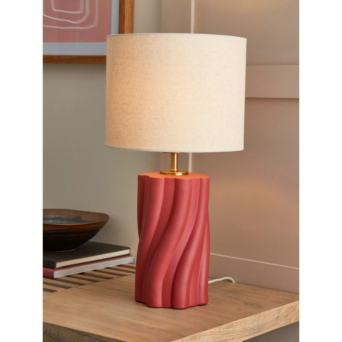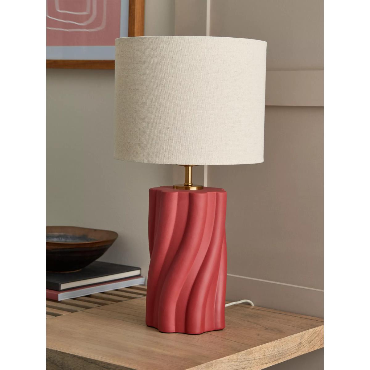 I love this lamp for its bold, sculptural base and vibrant red colour, which can act as a statement piece in a variety of interiors. It works particularly well in eclectic, modern, or even minimalist spaces looking for a pop of colour. The twist design adds visual interest without feeling overwhelming, making it versatile for both living rooms and bedrooms. For practical styling, consider pairing it with neutral accessories or surrounding it with furniture that’s simple and sleek, letting the lamp’s unique form stand out. Placing it on a side table or console with a few curated decorative objects can create a cohesive, styled look that’s both functional and eye-catching.