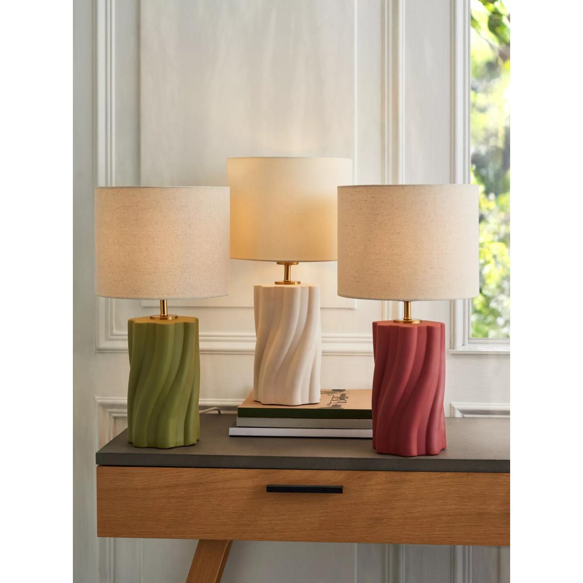 Fashionably nostalgic, our Twist ceramic table lamp is available in various contemporary colours. A subtly textured shade complements a sophisticated matt finish on the lamp stand. We like the statement size — great to show off in the hallway, lounge or bedroom. One ES LED bulb is required.