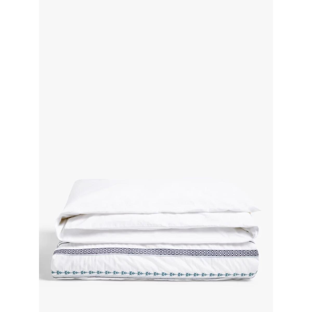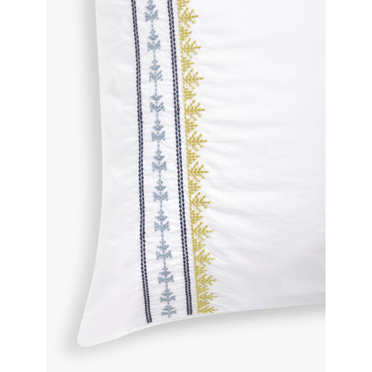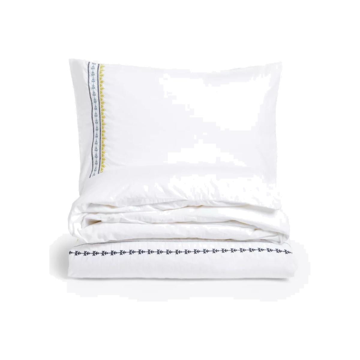 This bedding is made from soft and breathable 200-thread count cotton percale and features embroidered detailing in colourful shades. Please note that duvet covers and pillowcases are available to buy separately and not in sets. Have you thought about sheeting? Shop here. Bedding sizes To fit duvet/pillow size (cm) Standard pillowcase, L75 x W50cm Single duvet cover, L200 x W135cm Double duvet cover, L200 x W200cm King duvet cover, L220 x W225cm Super king duvet cover, L220 x W260cm Better Cotton By choosing our cotton products, you’re supporting our investment in Better Cotton’s mission to help cotton communities survive and thrive while protecting and restoring the environment. Better Cotton Farmers are farmers who care for the environment and respect workers’ rights and wellbeing. This product is sourced via a system of mass balance and therefore may not contain Better Cotton. bettercotton.org/massbalance