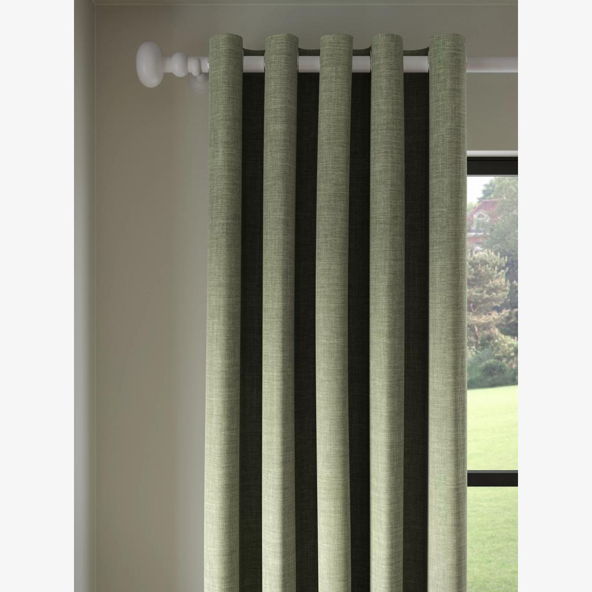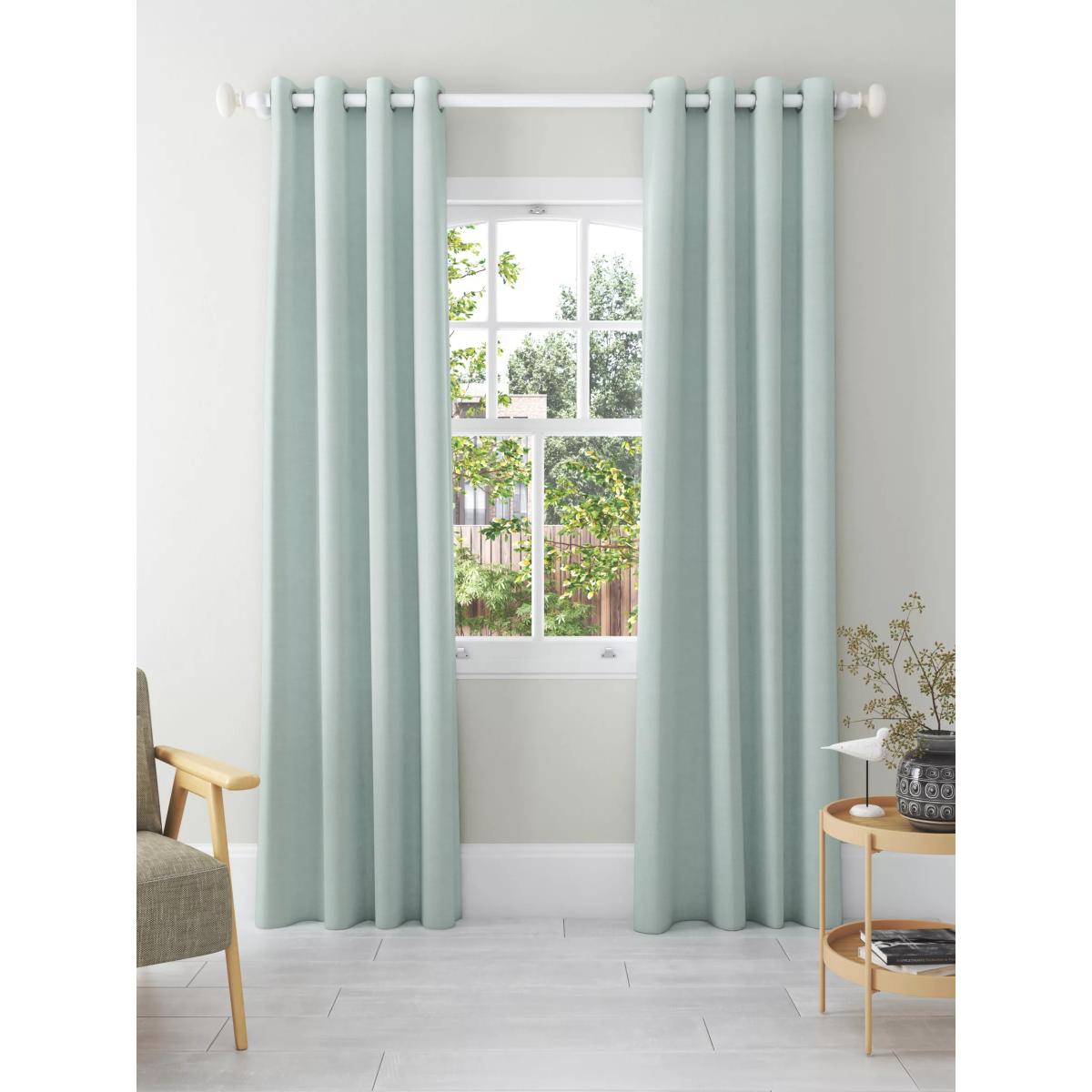 These curtains are plain-coloured with a textured weave that makes them an easy go-to option. The eyelet heading gives them a more contemporary look with large, even folds and the blackout lining both eliminates light and lends a full look to the curtains, improving the drape and enhancing the vibrancy of the pattern. Pair with our matching textured weave tiebacks, available to buy in a pack of two. Warm in winter, cool in summer As the blackout lining on these curtains blocks out sunlight they help keep your room cool as well as dark. This lining also adds an extra layer of insulation to the curtains, giving them the added benefit of being thermal. They protect against both heat loss and heat gain, regulating the temperature of your room so you’re kept warm in winter and cool in summer. The width stated indicates the size of one curtain panel when laid completely flat. This pack contains two panels and the track/pole length we've recommended allows for the two panels to be gathered when the curtains are drawn. For a fuller look, increase the curtain width. One pair of 117cm width curtains will fit a curtain track/pole size 117-167cm One pair of 167cm width curtains will fit a curtain track/pole size 133-167cm One pair of 228cm width curtains will fit a curtain track/pole size 182-228cm Worth knowing... We package our curtains in recycled materials to keep them protected whilst they make their way to you. This means that when they arrive there could be some creases in them. We recommend you hang them for a few days to allow them to flatten and for the creases to fall out. If after this period your curtains still show signs of being folded then follow the ironing instructions on the back of the packaging. Be aware that each style of curtain has different ironing instructions, including heat limitations according to the fabric, so do make sure you follow the guidance provided to get the best results. Do you need a curtain pole and accessories? Shop them here.