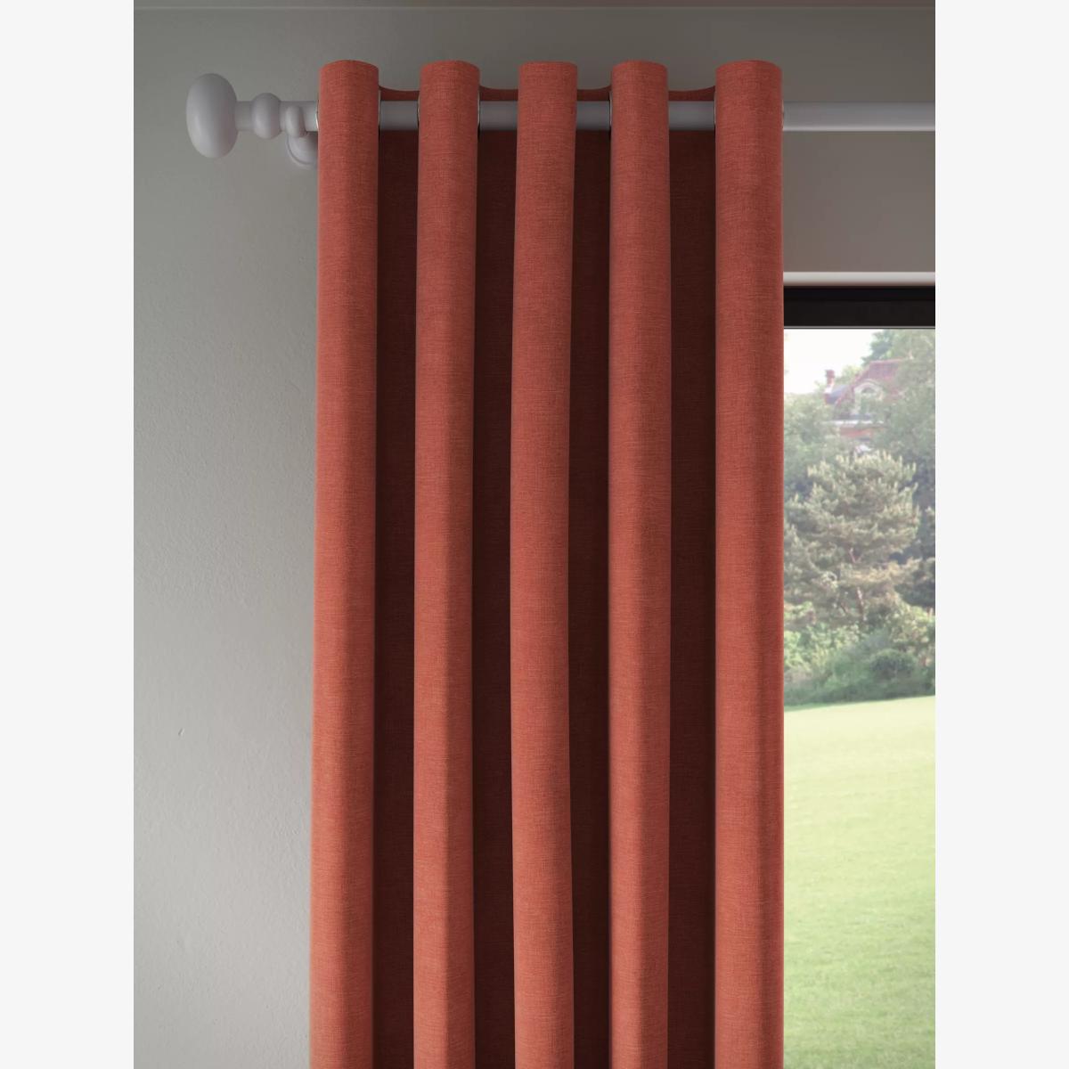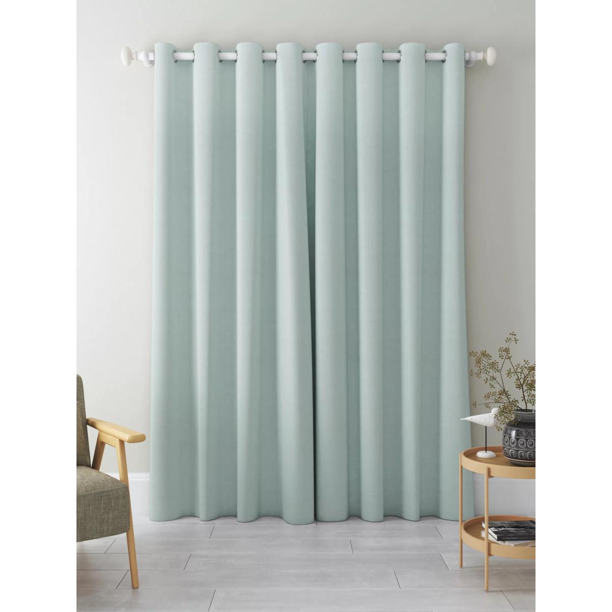 These curtains are plain-coloured with a textured weave that makes them an easy go-to option. The eyelet heading gives them a more contemporary look with large, even folds and the blackout lining both eliminates light and lends a full look to the curtains, improving the drape and enhancing the vibrancy of the pattern. Pair with our matching textured weave tiebacks, available to buy in a pack of two. Warm in winter, cool in summer As the blackout lining on these curtains blocks out sunlight they help keep your room cool as well as dark. This lining also adds an extra layer of insulation to the curtains, giving them the added benefit of being thermal. They protect against both heat loss and heat gain, regulating the temperature of your room so you’re kept warm in winter and cool in summer. The width stated indicates the size of one curtain panel when laid completely flat. This pack contains two panels and the track/pole length we've recommended allows for the two panels to be gathered when the curtains are drawn. For a fuller look, increase the curtain width. One pair of 117cm width curtains will fit a curtain track/pole size 117-167cm One pair of 167cm width curtains will fit a curtain track/pole size 133-167cm One pair of 228cm width curtains will fit a curtain track/pole size 182-228cm Worth knowing... We package our curtains in recycled materials to keep them protected whilst they make their way to you. This means that when they arrive there could be some creases in them. We recommend you hang them for a few days to allow them to flatten and for the creases to fall out. If after this period your curtains still show signs of being folded then follow the ironing instructions on the back of the packaging. Be aware that each style of curtain has different ironing instructions, including heat limitations according to the fabric, so do make sure you follow the guidance provided to get the best results. Do you need a curtain pole and accessories? Shop them here.