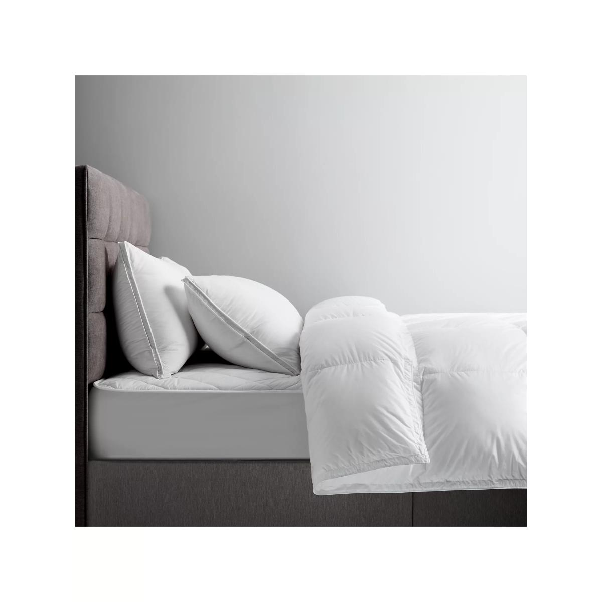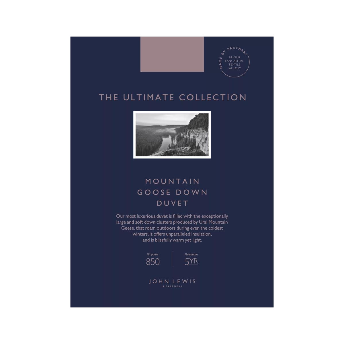 Sumptuously soft, light and quiet this duvet is crafted by us in Lancashire. It's filled with down from free-range geese that roam outdoors in all weathers, producing the highest quality down clusters; large, fine and blissfully warm. This product has been designed to enable two duvets from the same range to be joined together to provide the perfect level of warmth throughout the year. Warmth Without Weight Down has a naturally airy and open structure that traps heat, so it gives excellent insulation while being much lighter than feathers. This means you feel perfectly warm, without being weighed down. 3D Pocket Construction This duvet is sewn to create evenly divided square boxes. This means the down, feather or mixed filling is evenly distributed, so you enjoy warmth without cold spots. Responsibly sourced The feather and down used is certified to ensure high animal welfare and full traceability from farm to product. All of our natural bedding suppliers provide us with assurance that their feather and down is sourced only as a by-product. In addition, they're monitored to ensure they practice the highest standards of animal welfare. Products labelled with the DOWNPASS logo guarantee high quality and the certainty that down and feathers used as filling material are ethically sourced and come from tightly controlled and traceable supply chains. In addition, the quality of all products is monitored by independent testing institutes. Better Cotton By choosing our cotton products, you’re supporting our investment in Better Cotton’s mission to help cotton communities survive and thrive while protecting and restoring the environment. Better Cotton Farmers are farmers who care for the environment and respect workers’ rights and wellbeing. This product is sourced via a system of mass balance and therefore may not contain Better Cotton. bettercotton.org/massbalance Nomite™ This allows people with dust mite allergies to enjoy natural bedding. Following a hygienic washing and high-temperature drying process, fillings are then sealed in a tightly woven fabric cover which acts as a barrier against dust mites. Made by us at our textile factory in Lancashire Since 1953, our expert Partners have designed and manufactured a range of high-quality textiles at our UK factory, Herbert Parkinson. This includes our naturally filled bedding and Made to Measure 7-day service for curtains, blinds and cushions. Combining traditional handmade processes with state-of-the-art technology, our skilled Partners see each product through the entire creation process, ensuring it meets the design and quality standards we’re known for. We want you to be as proud of it as we are. Herbert Parkinson also offers a range of bespoke services, so if you can’t see exactly what you’re looking for or have specific requirements, do visit one of our shops and a Partner will be able to advise. You can find more about our factory in Lancashire here Have you thought about a new pillow? Shop here. Good to know As this is a natural product, it may have a slight odour. We recommend the duvet is aired for 48 hours.