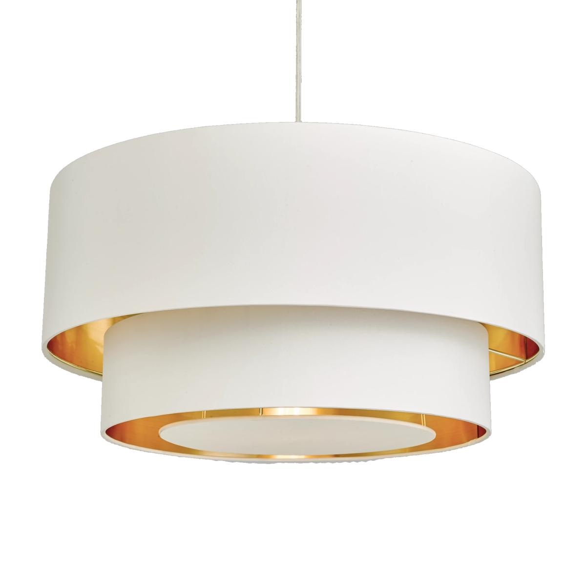 This ceiling shade attaches to your existing light fitting and will instantly refresh your space. Made from a rich faux satin silk fabric, its two tiers are complemented by a brushed metallic lining which enhances a warm glow of light and adds an Art-Deco feel to the design. Plus, glare from your bulb is shielded thanks to a neatly integrated diffuser. An adapter ring is supplied, so it's easier than ever to fit.