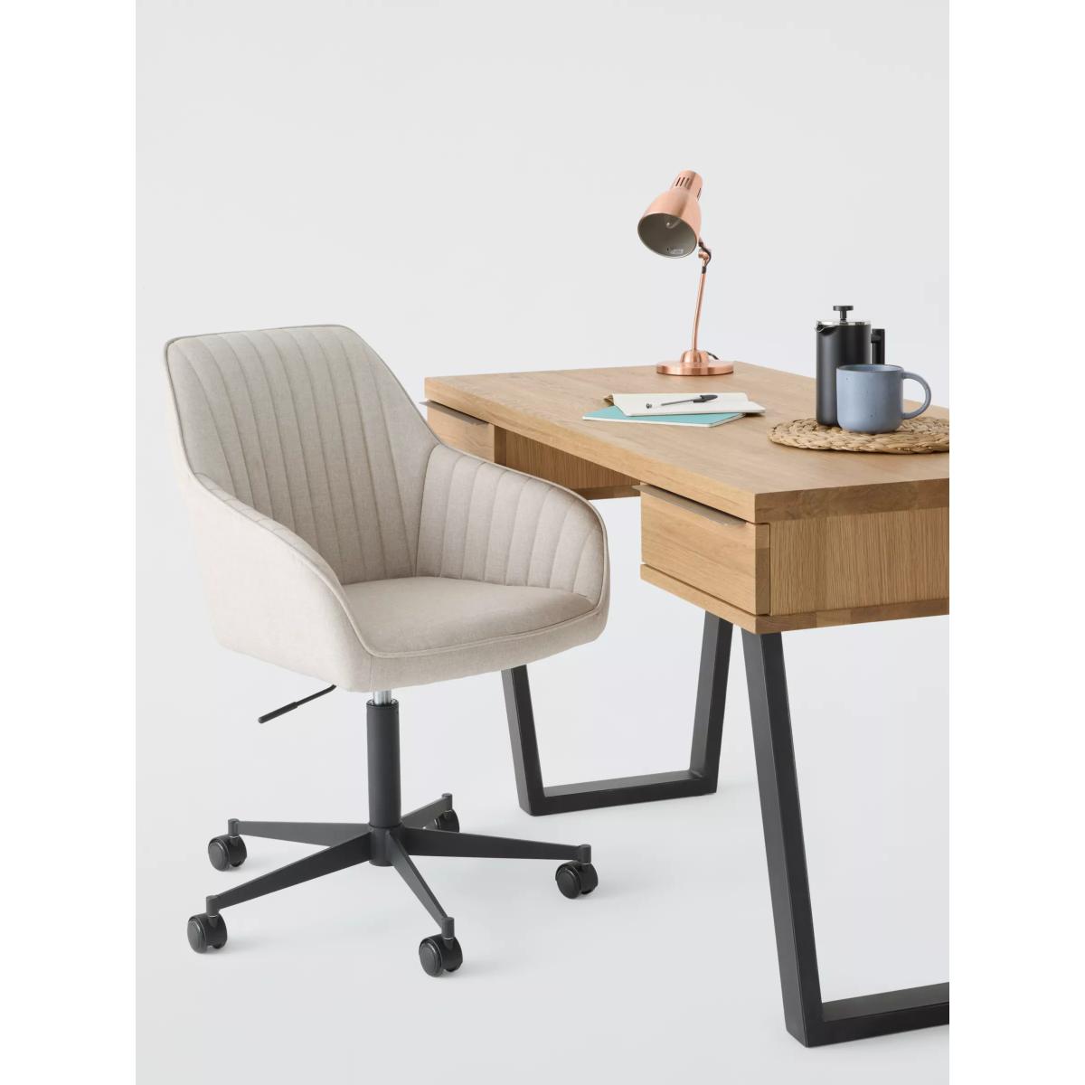 This office chair provides a comfortable seating solution for short periods of work at your desk. We've upholstered the seat in a soft fabric and its integrated armrests encourage you to sit with a comfortable and natural posture. The seat swivels and is height-adjustable and the castors ensure easy movement around your room. Protect your floor While this chair is suitable for the flooring specified, we suggest using floor pads or mats where possible, for added protection to your flooring and furniture. Want to see it first? You may want to see and get a feel for the furniture in one of our shops before ordering. We'll be able to tell you where the range you'd like to view is on display.
