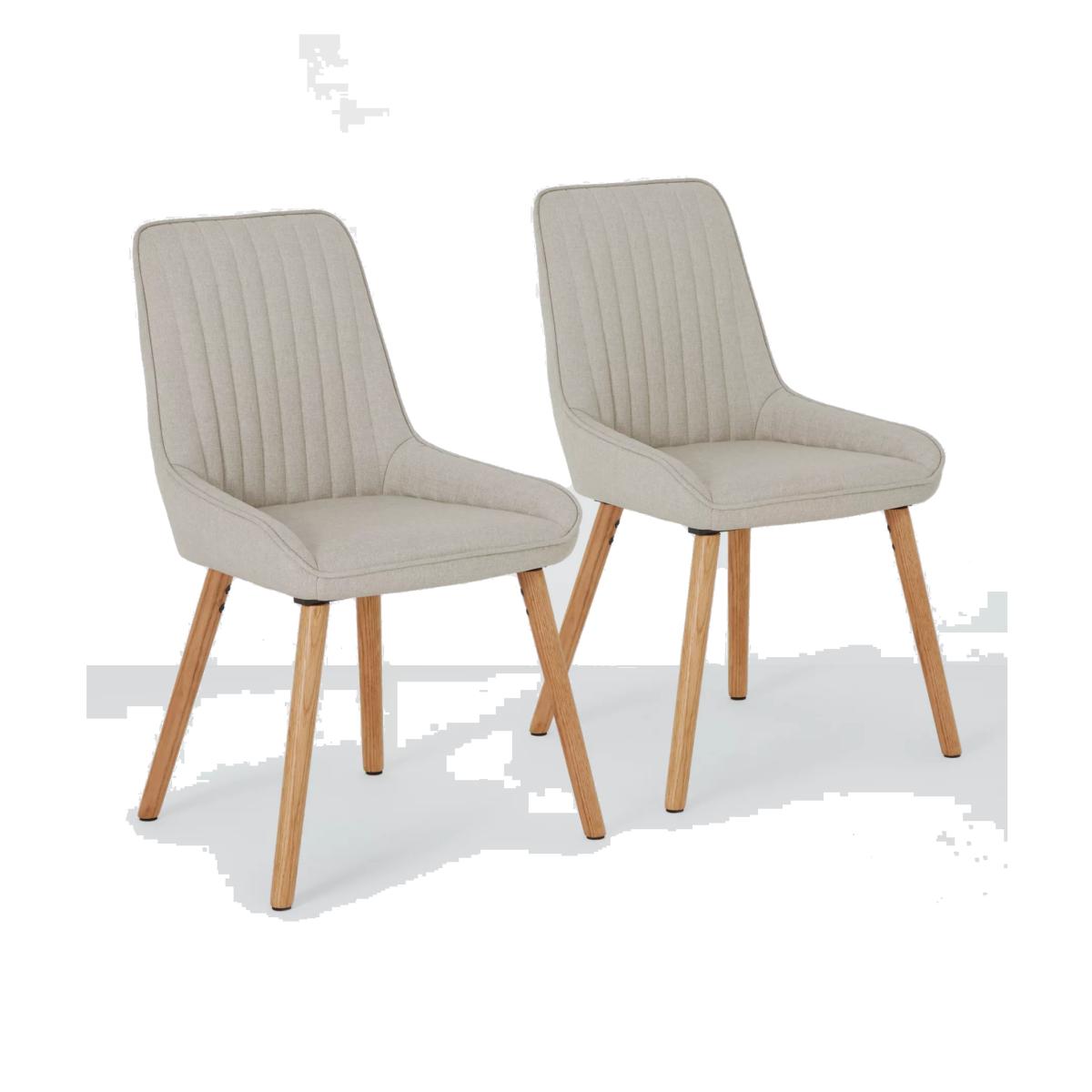 Offering comfort and quality, the Toronto side chairs are designed for regular dining and occasional use. Crafted with a sleek, solid oak leg, this practical set of 2 are neatly upholstered in a soft fabric, and foam filled for extra cushioning. Sturdy and supportive, they're versatile to suit a host of dining table styles. Want to see it first? You may want to see and get a feel for the furniture in one of our shops before ordering. We'll be able to tell you where the range you'd like to view is on display.