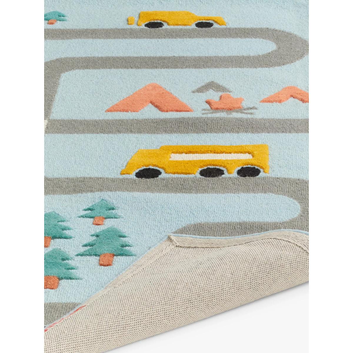 Beep, beep! Look out when you're crossing the road. Designed with a fun roadway transport print, this rug is a great way to enliven their space. Crafted from warm and snuggly wool by skilled artisans for a quality finish, it works well as both an enchanting piece of decor and as a base for some great roleplaying fun.