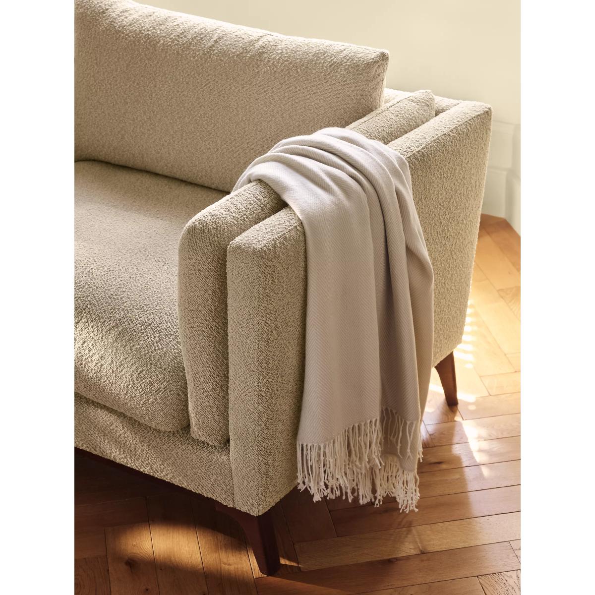 Product Information Ready for your sofa sanctuary? We love the cocooning shape of our Trim sofa, somewhere to switch off and escape to at the end of a busy day. This welcoming retreat is designed for long-lasting comfort. Made in the UK and MADE TO LAST, the sofa frame has a 15-year guarantee, as solid as the wood it's built from. The wood has been selected for its low-moisture content, for strength and durability. We've got to thank the designers for their thoughtful touches here. They've added foam in the side cushions to create a comfortable structure that's easy to maintain and doesn't need constant plumping. That foam has been treated with new plant-based chemicals rather than traditional petroleum-based chemicals. Plus, the plush sofa cushions have overlocked seams, so when you unzip them there are none of those annoying loose threads you sometimes find. Resilient eight-gauge springs across the length of the sofa ensure maximum comfort and support with a robust wire threaded throughout the seat, so there's no chance you'll sink into a corner or disappear down the sides like a phone or set of keys on an old settee. Always embarrassing when that happens. The bouclé fabric on this sofa is ideal for upholstery with its tightly twisted fibres that are ultimately hardwearing. This creates a softly textured finish with a tactile feel that really complements the wrap-around cosy design. So, go ahead and put your feet up. Try before you buyWe're confident in our furniture's quality, but it's always a good idea to check that it's a good personal fit for you. Measuring Up for Furniture Guide Sofas, Sofa Beds & Chairs Buying Guide Upholstery Care Guide
