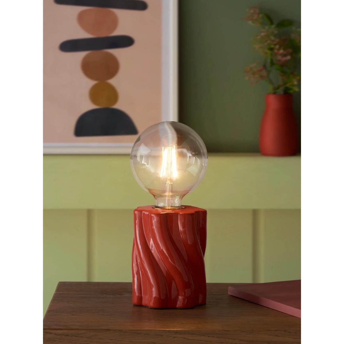 I love this lamp for its bold, contemporary look combined with a touch of fun thanks to the twist detail on the base. Its bright red gloss finish makes it a stylish statement piece that works well in eclectic, modern, or retro-inspired interiors. It's particularly great for adding colour and personality to side tables, desks, or open shelving in living rooms or bedrooms. To style it effectively, pair it with sleek, minimal accessories to let the lamp stand out, or mix with other warm-toned accents for a cohesive look. Practical tip: keep the surrounding area uncluttered so the lamp's unique design can really shine.