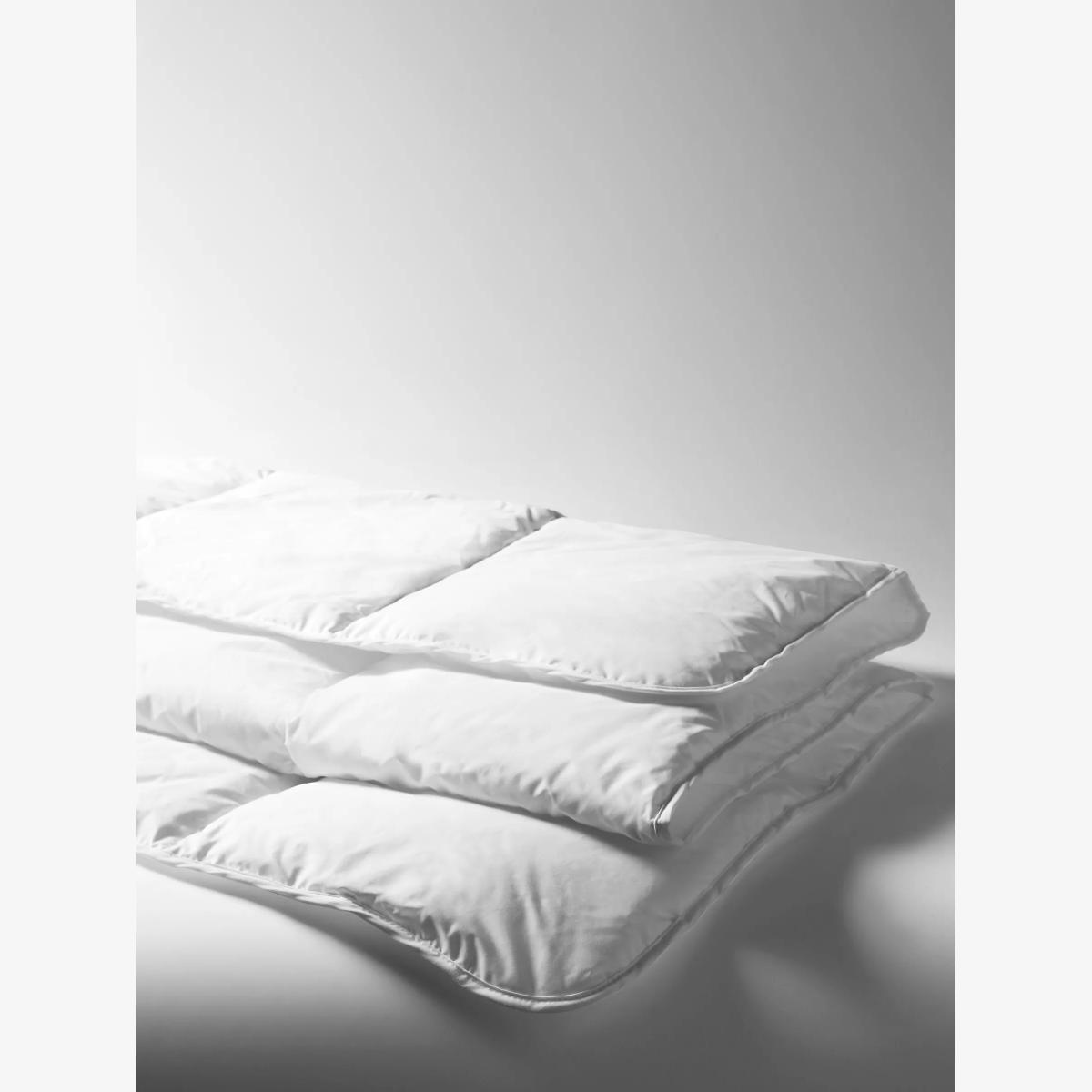 This luxurious duvet is filled with 100% recycled fibres and is encased in a multi-pocketed construction which mimics a feather and down duvet, creating blissful warmth without weight. This product has not been tested on animals, doesn't contain any animal-derived ingredients and is registered with The Vegan Society. Warmth without weight This premium filling creates an airy and open structure that traps heat, so it gives excellent insulation while being much lighter. This means you feel perfectly warm, without being weighed down. Better Cotton By choosing our cotton products, you’re supporting our investment in Better Cotton’s mission to help cotton communities survive and thrive while protecting and restoring the environment. Better Cotton Farmers are farmers who care for the environment and respect workers’ rights and wellbeing. This product is sourced via a system of mass balance and therefore may not contain Better Cotton. bettercotton.org/massbalance Worth Knowing PrimaLoft Bio Filling is made from biodegradable fibres which break down in landfills and oceans.