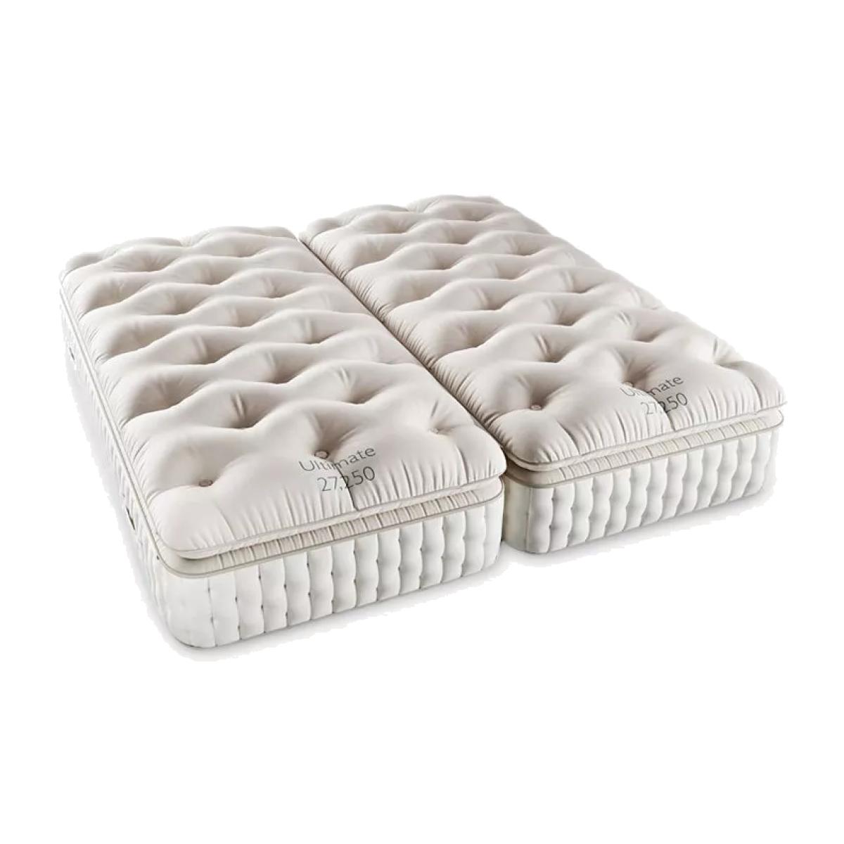 The Ultimate 27250 pillowtop mattress is made with layers of natural fillings including hemp, flax, British wool, cotton, mohair and silk. Combining 100% natural fillings with innovative pocket spring technology for a super comfortable sleep. This mattress can be ordered in a regular or firmer tension depending on your comfort needs. This zip link model can be used as one large mattress or as two independent mattresses. Our Ultimate Natural Collection is handmade by experts in Yorkshire, with natural fillings chosen for their wonderful comfort, temperature-regulating and moisture-wicking properties. The innovative, high-density pocket springs reduce pressure points and give excellent targeted support. Plus, the combination of eco-friendly and natural fillings, alongside a completely glue-free design means these mattresses are fully recyclable at end of life for a much more sustainable sleep space. Handcrafted by Harrison Spinks. Natural fillings Manufactured in Yorkshire, this mattress is upholstered with layers of natural fillings to wick away moisture, keeping your bed fresh and hygienic, without compromising on comfort. Cortec™ Quad pocket spring system This glue-free support system has been designed, developed and manufactured in-house, with a design that unites comfort and sustainability. It offers a two-stage level of support thanks to a spring-in-spring design, delivering even greater lumbar support and pressure relief. The heavier parts of your body will be perfectly supported to help maintain an aligned spine and to prevent unwanted aches and pains. Plus, as the springs work individually, air can flow better through the mattress to keep the temperature controlled. Eco-friendly design Marking a huge and sustainable step forward in mattress manufacturing, the patented Cortec™ Quad springs are sealed with heat rather than glue. Not only does this mean the springs can work individually for maximum efficiency, it also means each spring can be disassembled and reinvented in the future. So this mattress is 100% recyclable at the end of its life, rather than ending up in landfill sites across the country. We guarantee to recycle your mattress responsibly when you’re ready to buy your next one, after seven years. and we’ll help you to choose a new mattress and recycle this one. Make the most of your mattress After unwrapping your new mattress, leave it in a well-ventilated room for a few hours. Any natural scent from the fillings will dissipate after a few days. We recommend using a cotton mattress protector and airing your mattress regularly. If you’re placing this mattress on a slatted base, ensure the gaps are no more than 7.5cm apart. Try before you buy This is an important purchase and it’s worthwhile to try your choice of mattress in store to make sure it's right for you. Our store Partners will be able to tell you more about its benefits, and recommend options based on your needs.