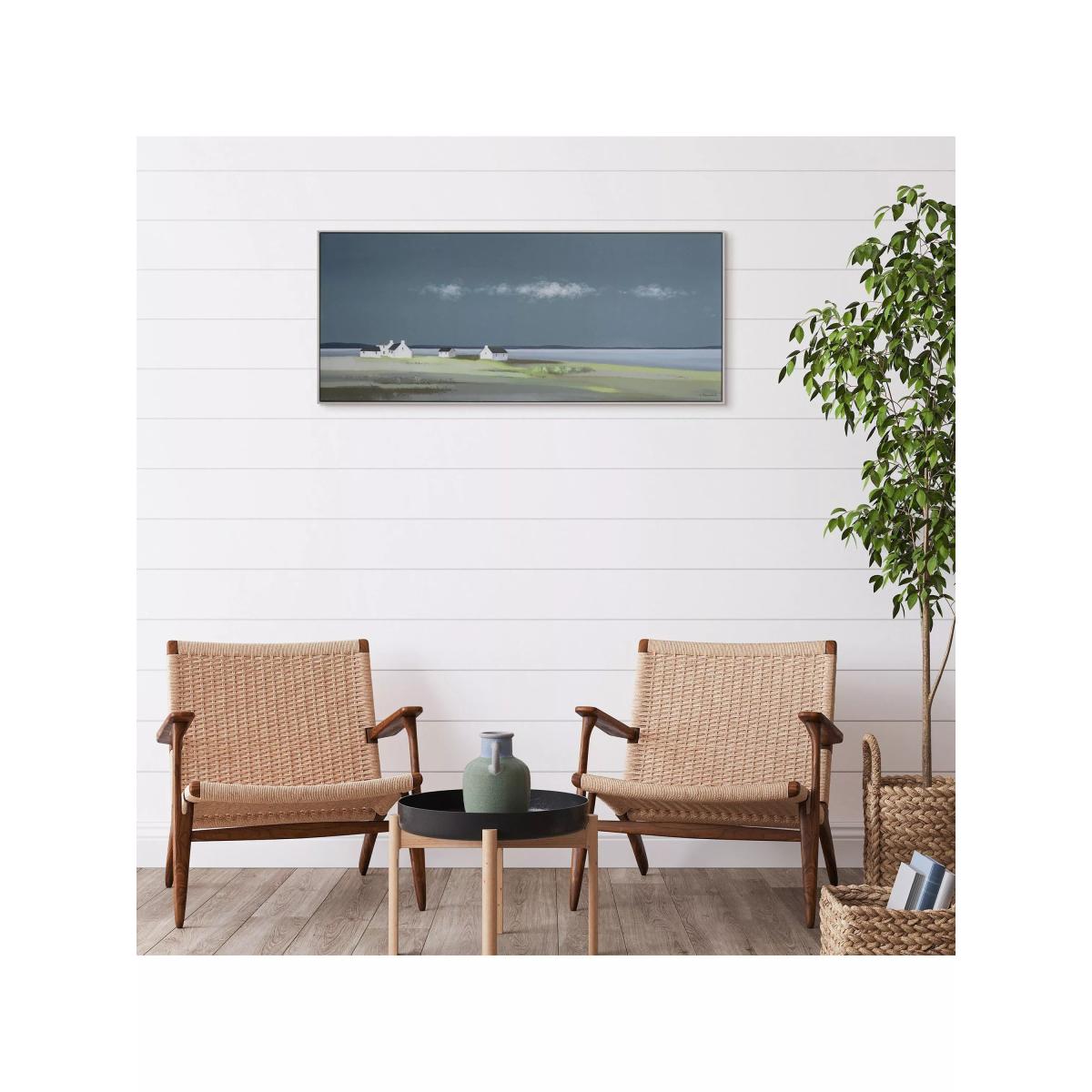 A family of whitewashed cottages are warmed in a sunlit spot beneath Ulyana Hammond's bruised blue-grey sunset. Framed canvas print, ready to hang on your wall. Ulyana Hammond was born in 1981 in St Petersburg, one of the most beautiful cities in Russia, known for its outstanding architecture. These wonderful surroundings were a great source of inspiration to her as she grew up to appreciate the historical riches around her. While studying traditional art and sculpture at university, Ulyana spent many hours sketching and perfecting her art, discovering this rewarding outlet for her passion of painting contrasting shape and colours. Returning to St Peterburg to see family, the trip brought all her childhood memories flooding back. This beautiful city continues to influence her work. Have you thought about wall hooks and fittings?